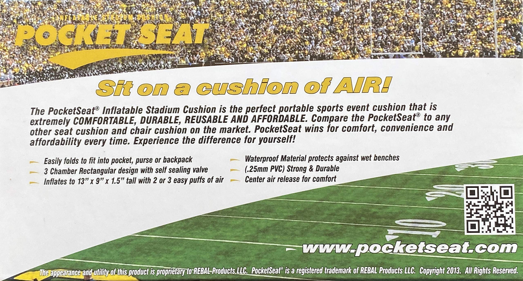 - Original Stadium Seats & Cushions – PocketSeat Inflatable Seat Cushion, Sit on a Cushion of Air, 14x11x1.5, Durable .25mm PVC Folds to fit in Pocket, Purse or Backpack by PocketSeat Inflatable Chair Cushion
