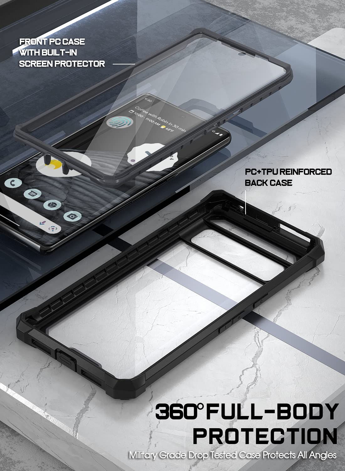 - Original Basic Cases – Guardian Case Compatible with Pixel 7 Pro 5G, Built-in Screen Protector Work with Fingerprint ID, Full Body Hybrid Shockproof Protective Rugged Clear Bumper Cover Case, Black/Clear by Poetic