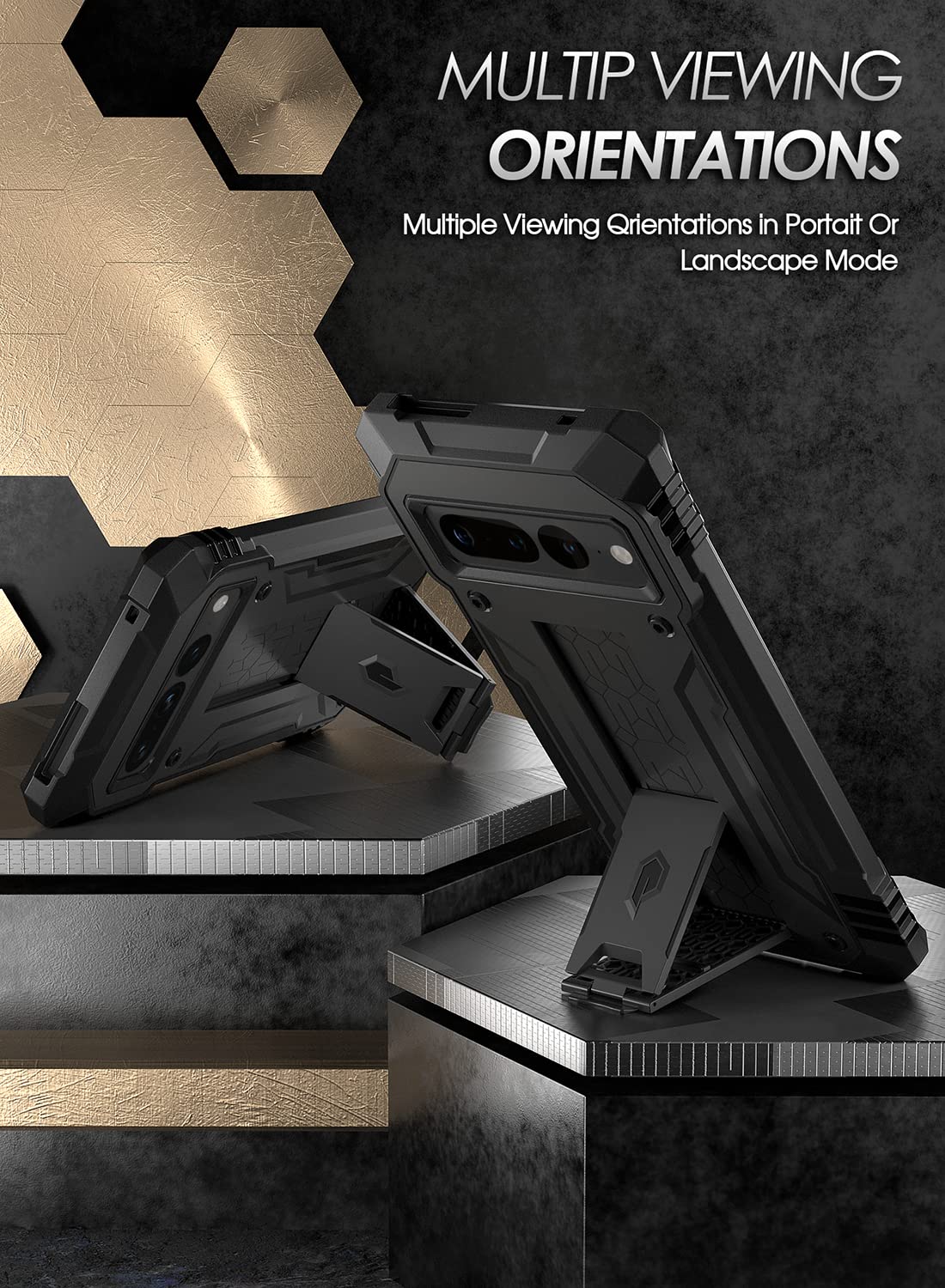 - Original Basic Cases – Revolution Case Compatible with Pixel 7 Pro 5G, Full Body Rugged Shockproof Protective Cover Case with Kickstand, Built-in Screen Protector Work with Fingerprint ID, Black by Poetic
