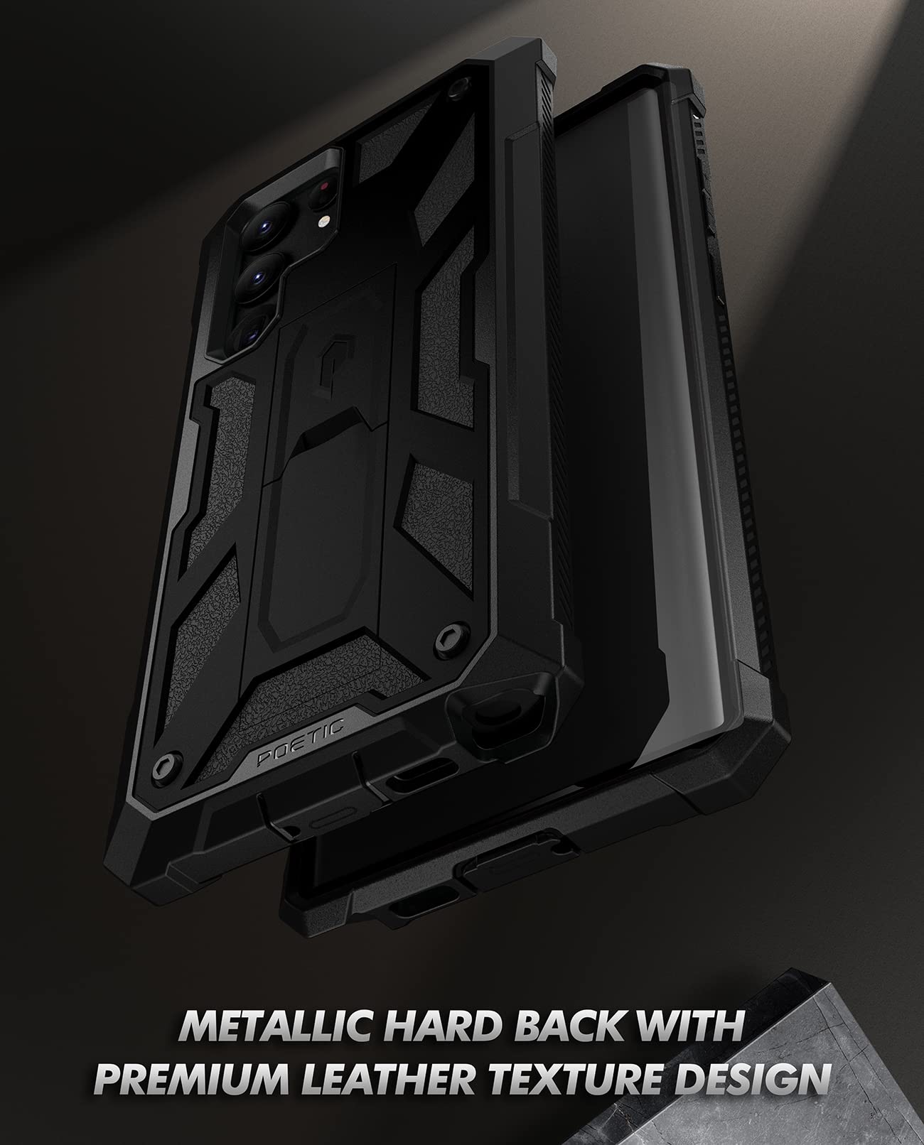 - Original Basic Cases – Spartan Case for Samsung Galaxy S22 Ultra 5G 6.8 inch, Built-in Screen Protector Work with Fingerprint ID, Full Body Rugged Shockproof Protective Cover Case with Kickstand, Matte Black by Poetic