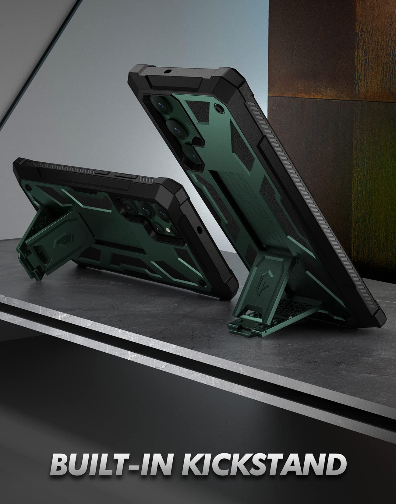 - Original Basic Cases – Spartan Case for Samsung Galaxy S22 Ultra 5G 6.8 inch, Built-in Screen Protector Work with Fingerprint ID, Full Body Rugged Shockproof Protective Cover Case with Kickstand, Metallic Green by Poetic