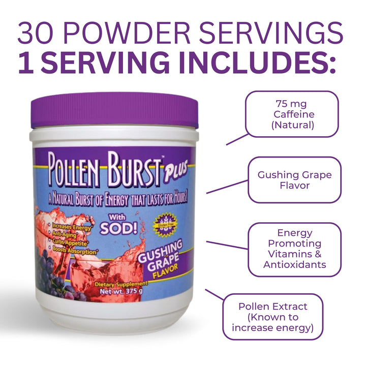 Discover the authentic Pollen Burst Plus - Gushing Grape by Youngevity, part of our Blended Vitamin & Mineral Supplements collection. Imported directly from the USA and sourced from trusted suppliers, this product is 100% authentic and delivered anywhere in India at the best price.