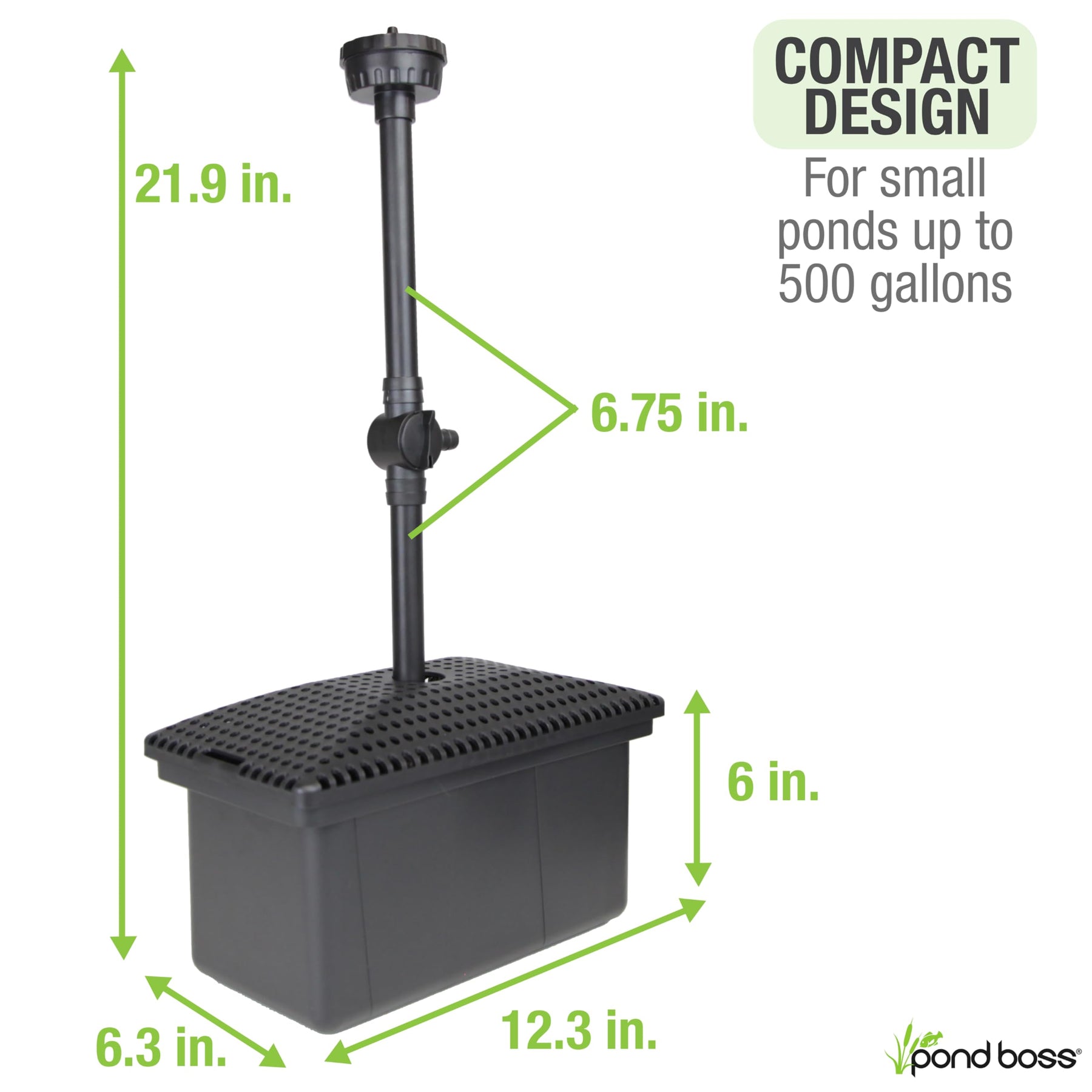 - COMPACT FILTRATION SYSTEM – all-inclusive filtration system designed to improve water quality in ponds and water features