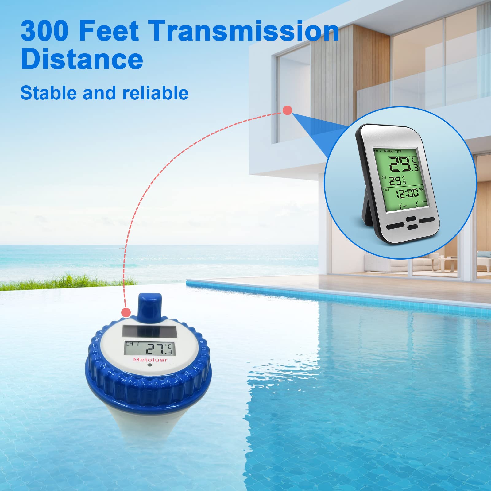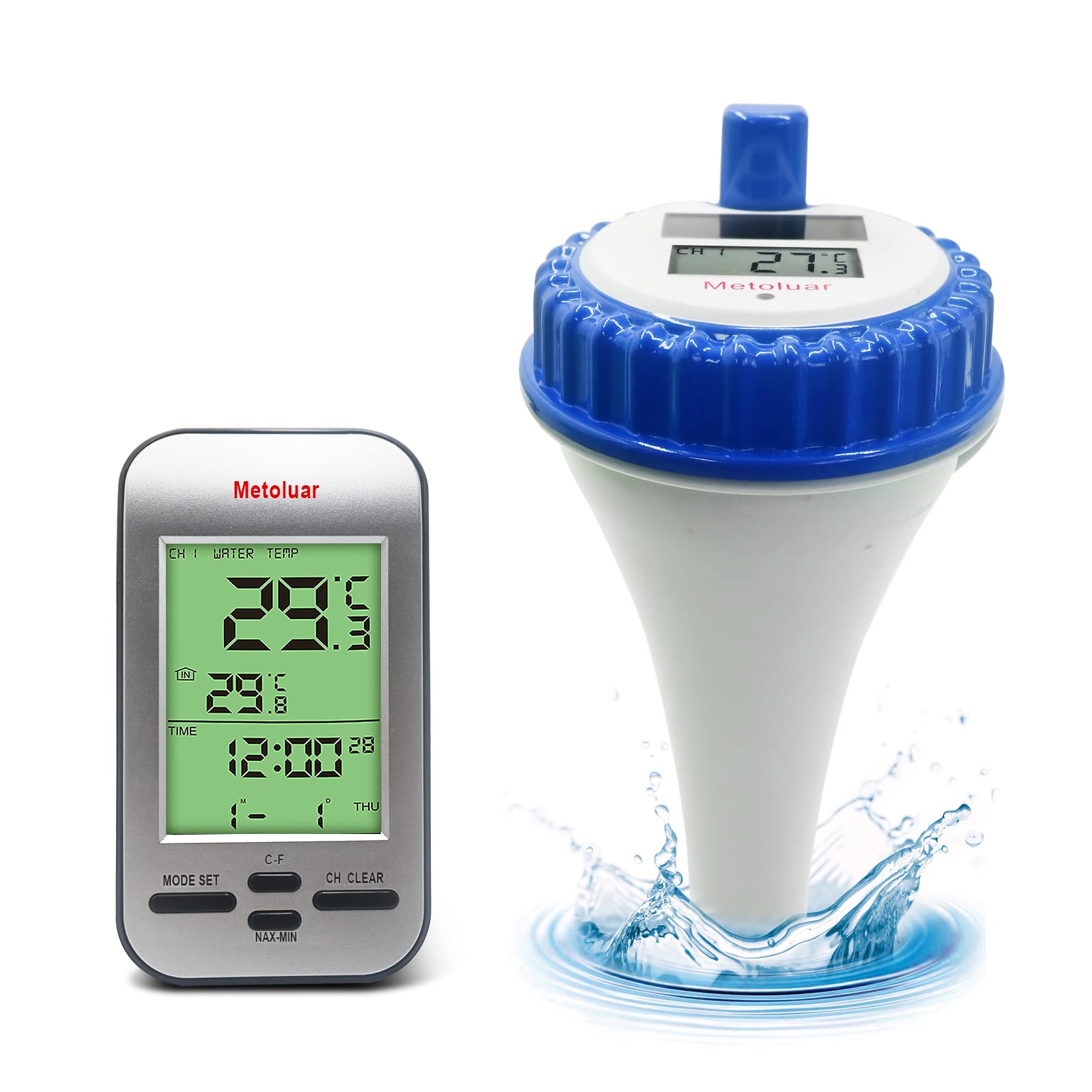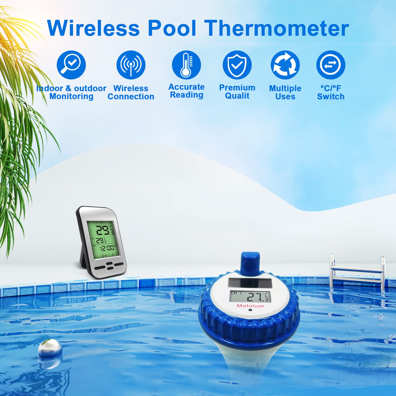 - Original Outdoor Thermometers – Pool Thermometer, Wireless Floating Easy Read, Solar Remote Digital Outdoor Floating Thermometers for Swimming Pool, Bath Water, and Hot Tubs by Metoluar