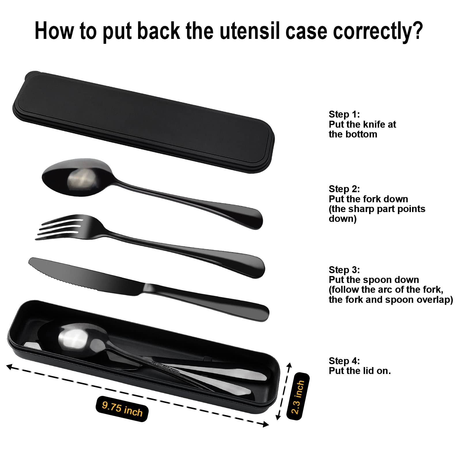 - Original – Portable Travel Utensils Set with Case 18/8 Stainless Steel Black Silverware Sets Include Knife Fork and Spoon with Case Reusable Flatware Sets for Lunch Box and Camping (Black) by Heywood
