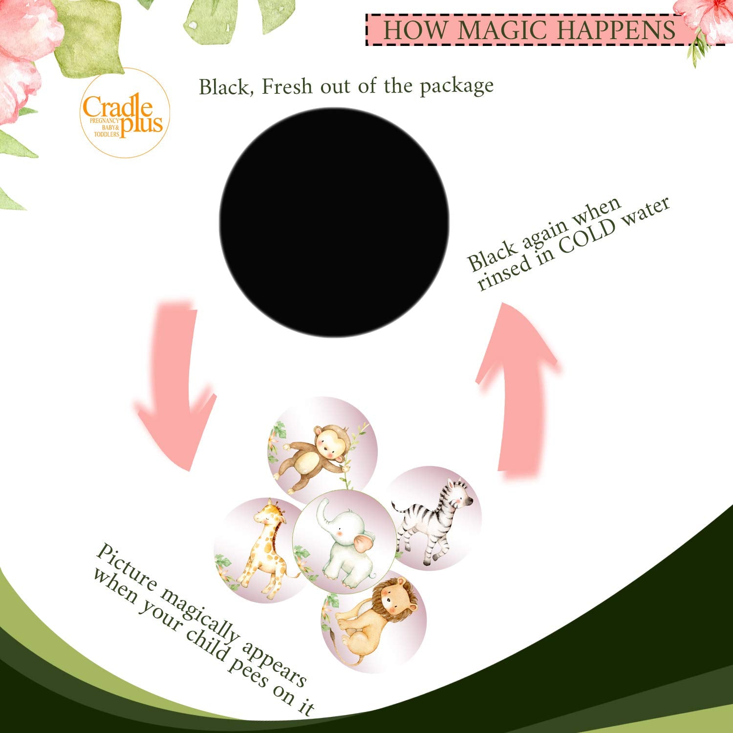- Original Potties – Potty Training Seat Magic Sticker, Animal Toddler Potty Training Toilet Color Changing Sticker, 5 Pack Toilet Targets with Free Potty e Book, Use with or Without Potty Chart or Potty Watch by CRADLE PLUS PREGNANCY BABY & TODDLERS