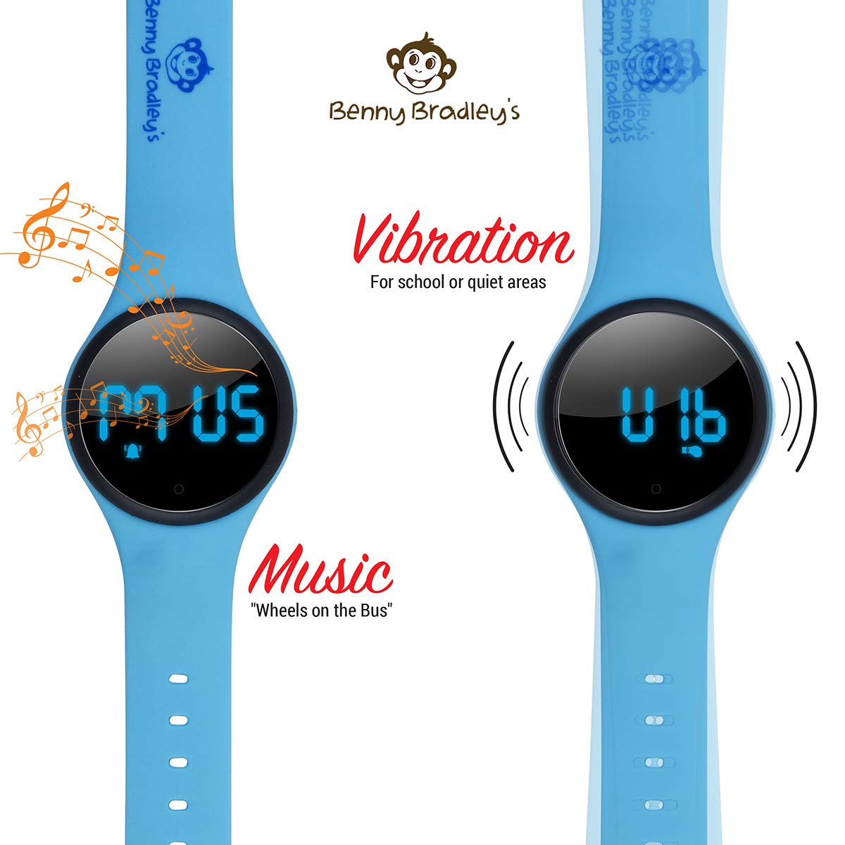 - POTTY TRAIN YOUR KIDS EASILY WITH A FUN MELODY ALARM - the watch is programmable to play the tune Wheels on the Bus to remind your kid to go do their toilet business every 30, 60, 90 mins or 2 hours, and automatically recurs. The watch can switch from music to vibration if needed for school or quiet areas.