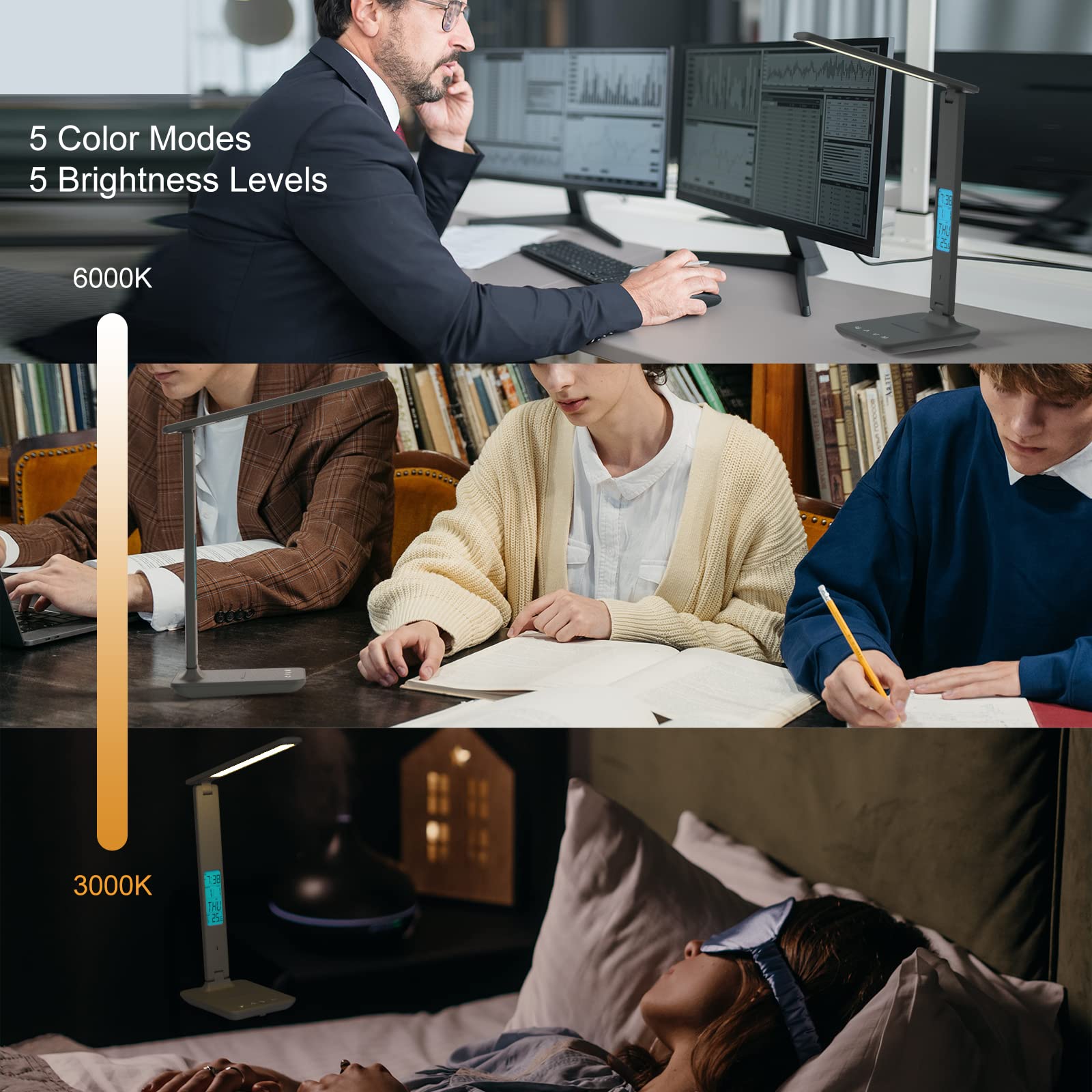 - Original Desk Lamps – Desk Lamp, LED Desk Lamp with Wireless Charger, USB Charging Port, Table Lamp with Clock, Alarm, Date, Temperature, Office Lamp, Desk Lamps for Home Office, Grey by poukaran