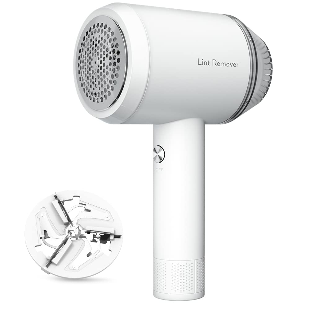 - POWERFUL AND EFFICIENT: The sweater shaver with 5W powerful motor means pinning at nearly 9000 RPM, it gives you the power you need for both general garment care and emergency quick fixes. This sweater defuzzer has upgraded 3-leaf 400T3 stainless steel blades, 60% faster than similar lint shavers on the market. This fabric trimmer will be the best fabric shaver for you to refresh your clothes.(Comes with an extra blade)