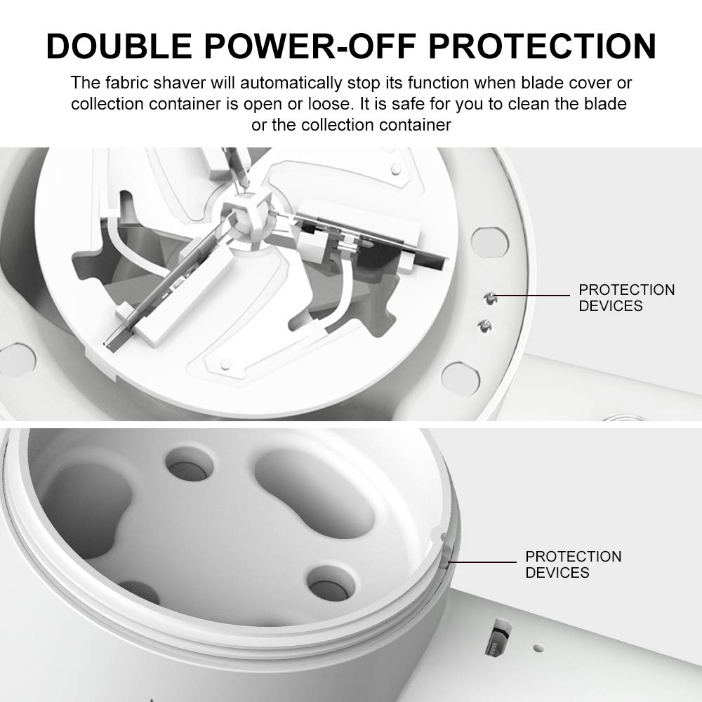 - MULTIPLE CLOTHING PROTECTION: This pilling shaver has elastic blades and the bionic-honeycomb mesh which can protect any fabric from being damaged, you don't need to worry about the loose yarns can be got sucked into the wool shaver. The bionic-honeycomb mesh has 3 different sizes of holes, ensuring the shaver eliminates different sizes of bubbles. This fuzz ball remover also has dual safety switches that can protect your safety when the mesh cover is loose.