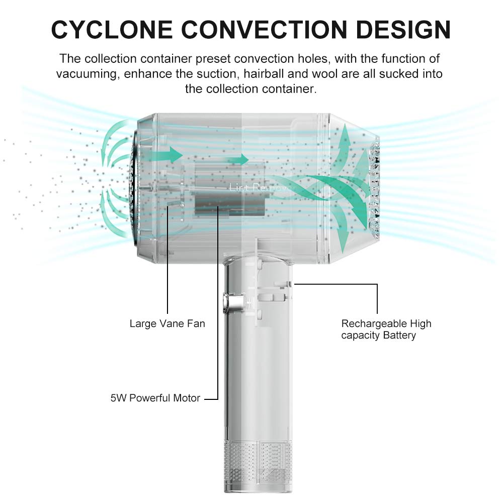 - STRONG CYCLONE CONVECTION: No need lint roller anymore. This pilling remover has 360 strong cyclone convection easily collect any hairball that has been trimmed. The ball remover fabric fuzz remover with convection holes combined with the large vane fan can achieve a strong effect of cyclone vacuuming.