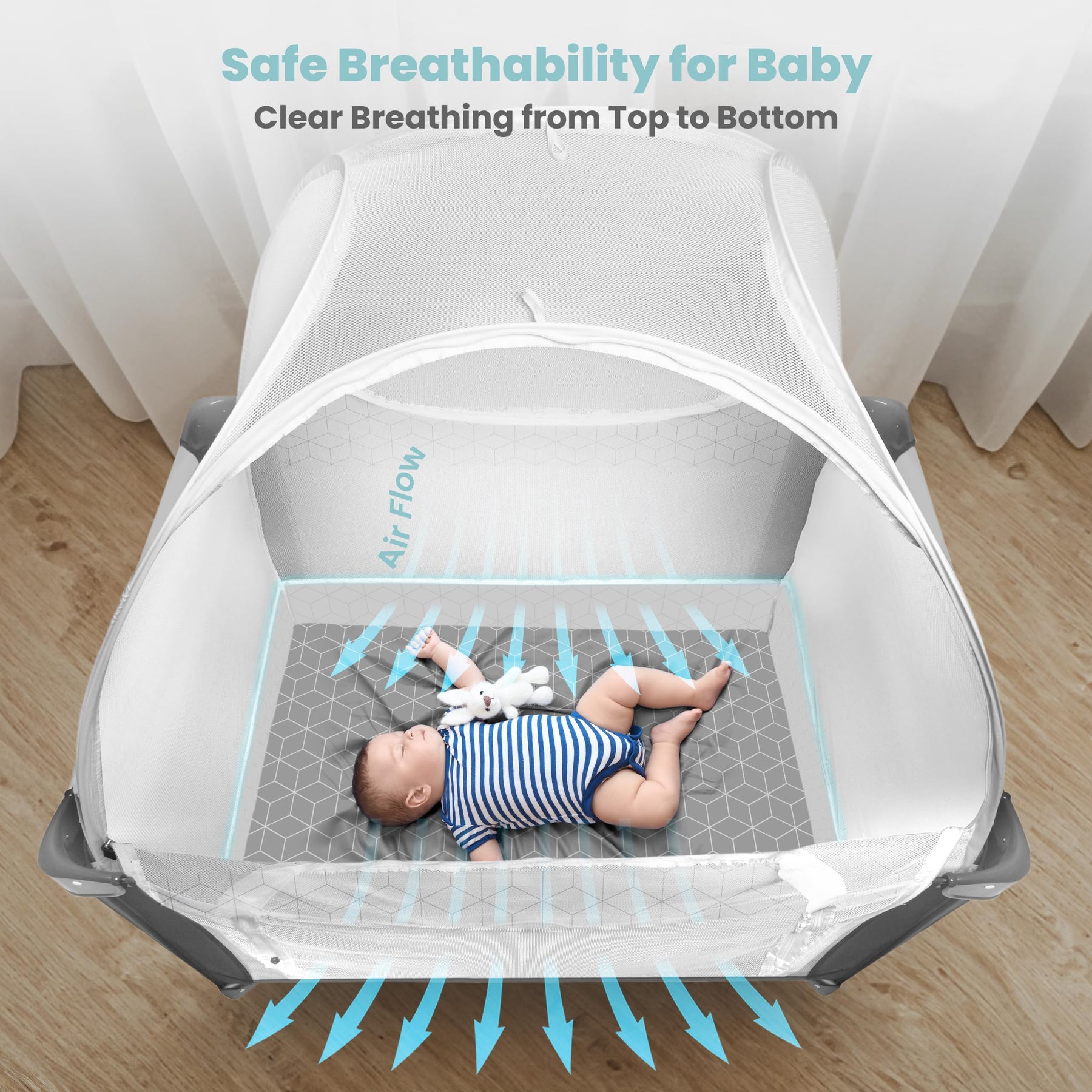 - PROTECT YOUR BABY FROM FALLS - Ensure paramount protection for your baby! Our Pack n Play tent Prevents your little one from climbing out. Designed in the USA, our crib tents are also great as a baby mosquito net for bed for your little one's safety
