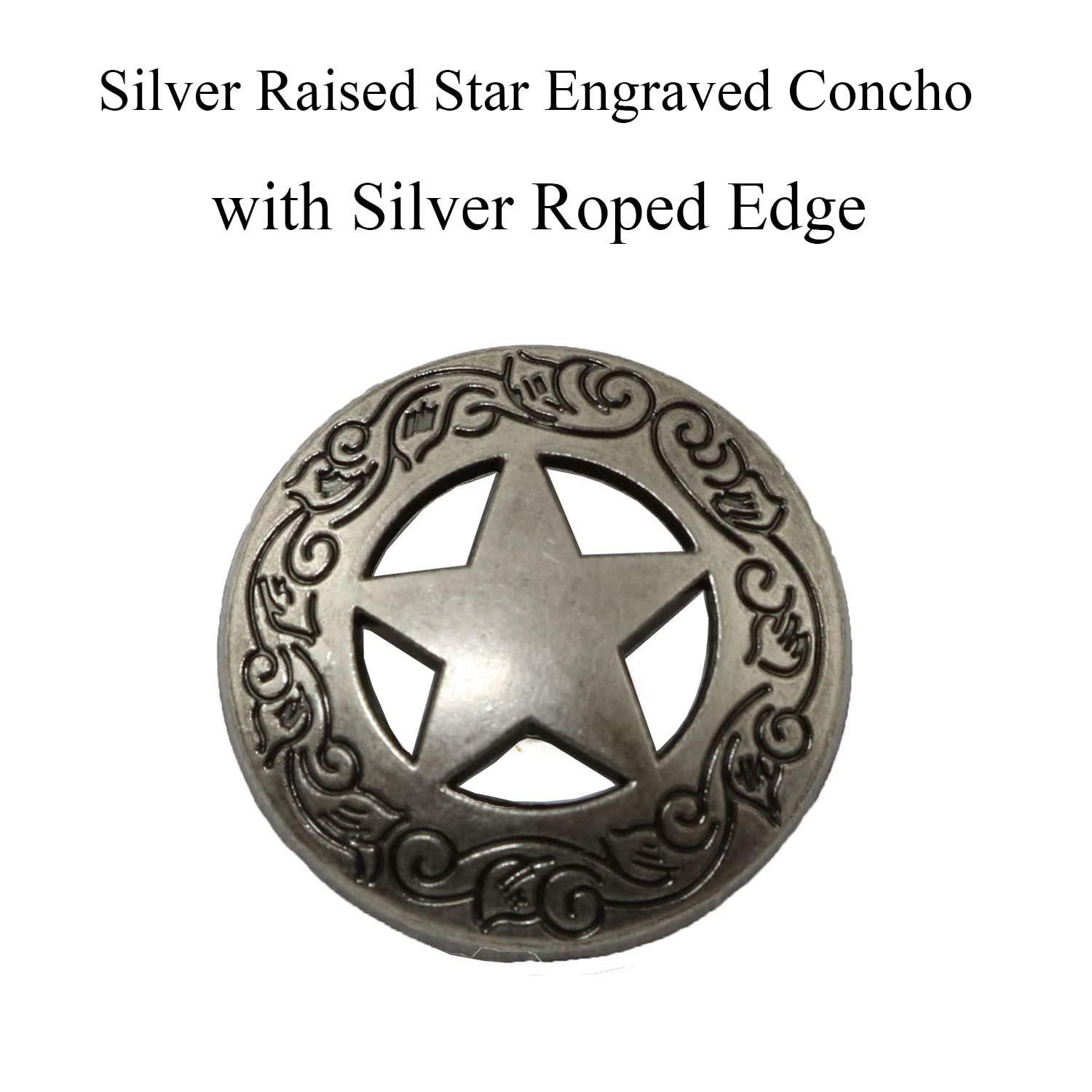 - A brand new 3-D Star screw back Concho with a floral border.