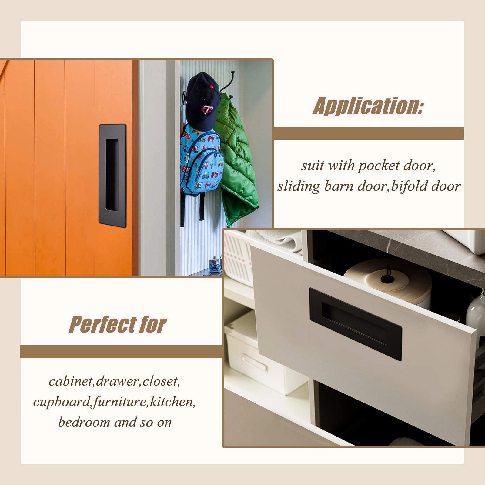 - Original Sliding Door Hardware – (2 Pack) Black Rectangular Recessed Flush Handles Sliding Door Pulls Stainless Steel Closet Door Finger Pulls 6 Inch(150mm) Length Flush Pull Handles by Probrico