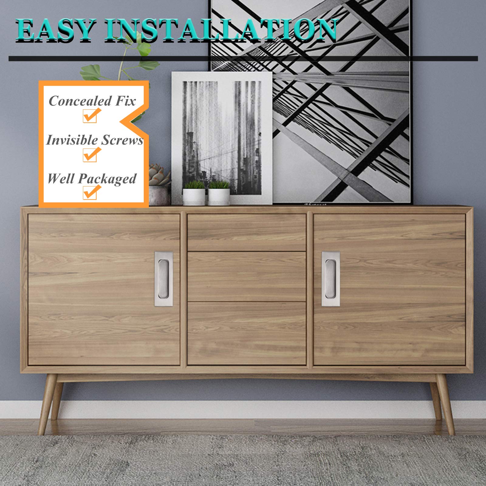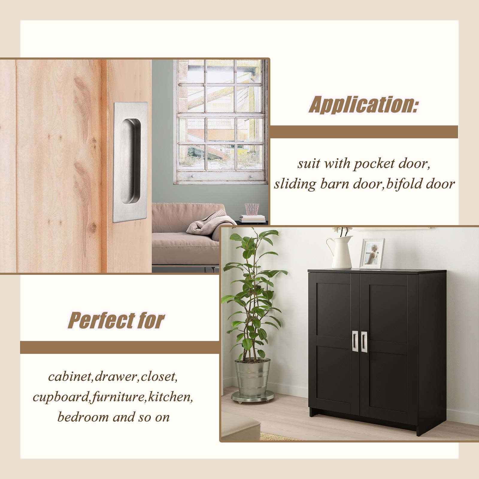 - Material: 304 Stainless Steel with Brushed Nickel Finish provides a longer lasting and more durable product. The surface and all edges of these modern, rustic and contemporary flush sliding door handle are finely chamfered, it touches soft, smooth and quality feeling.