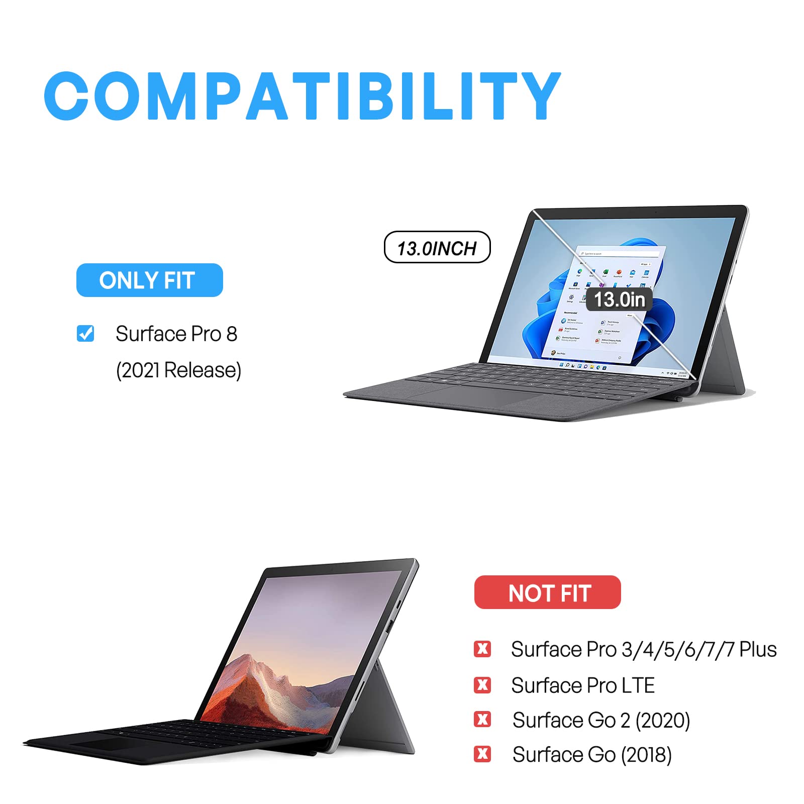 - Protective case compatible with 13.0-inch Microsoft Surface Pro 8 2021 Release, NOT compatible with any other models (Keyboard and Surface Pen are Not included)