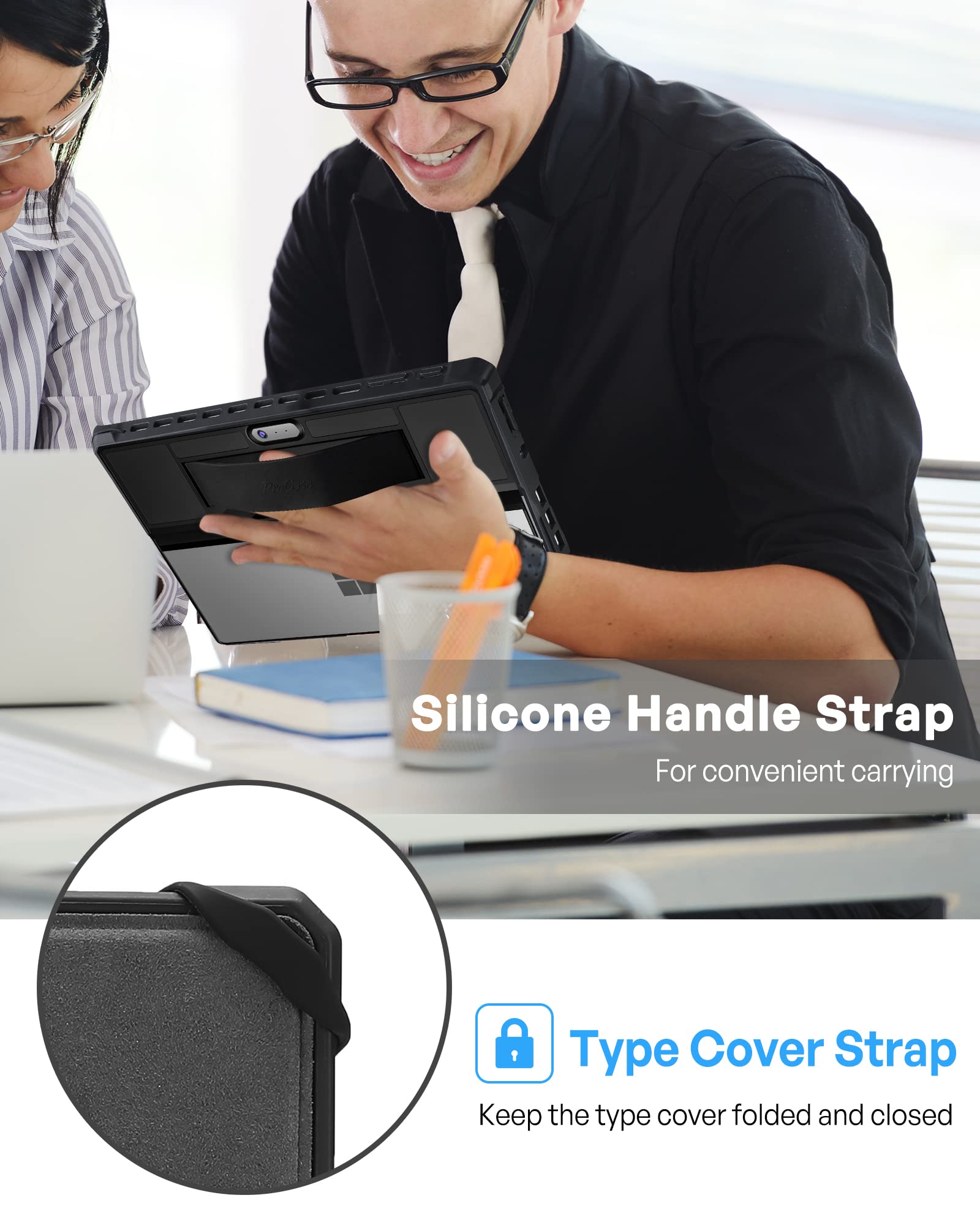 - Original Cases – Case for Surface Pro 8, Rugged Protective Cover with Built-in Hand Strap Compatible with Type Cover Keyboard for 13.0 Microsoft Surface Pro 8 2021 Release –Black by ProCase