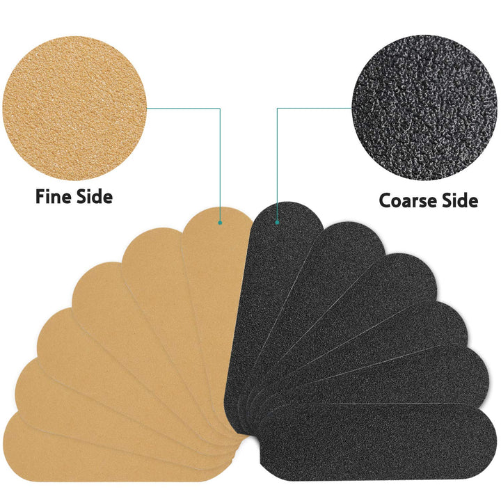 - About Package: Coming with 12 refilled pads which easy to tear. it includes one foot file + 12 pieces of spare abrasive papers (6 pcs coarse,6 pcs fine).if you face problems while using our product, please feel free to contact us.