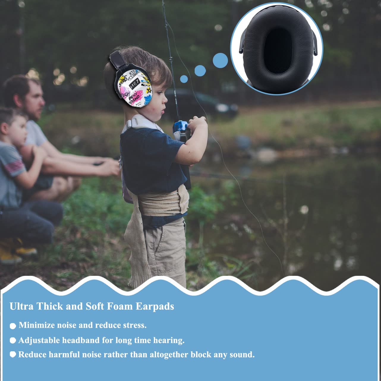 - Original Safety Earmuffs – Kids Ear Protection Safety Ear Muffs, NRR 25dB Noise Reduction Children Earmuffs, Hearing Protectors for Sleeping, Studying, Airplane, Concerts, Fireworks - Graffiti with Black Band by PROTEAR