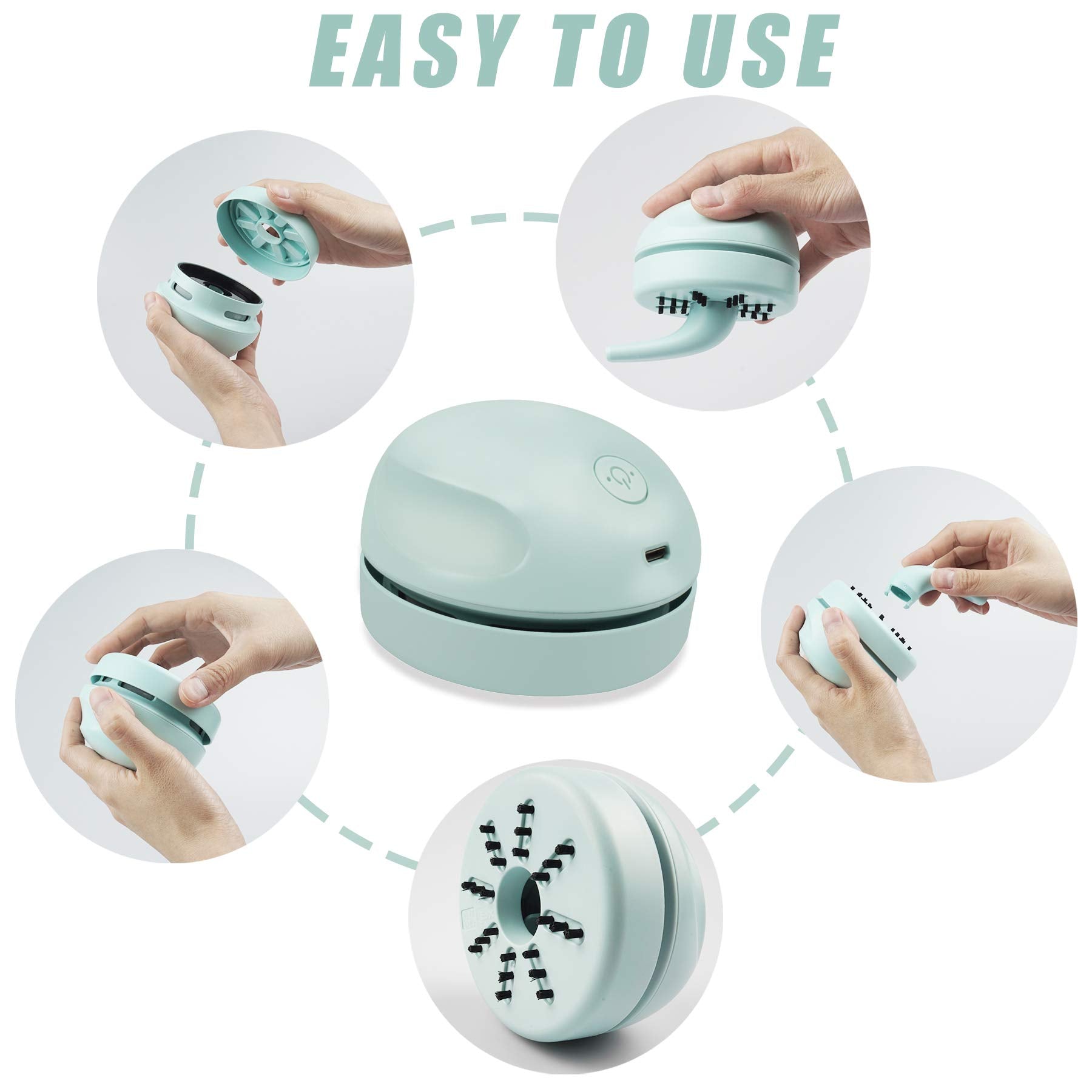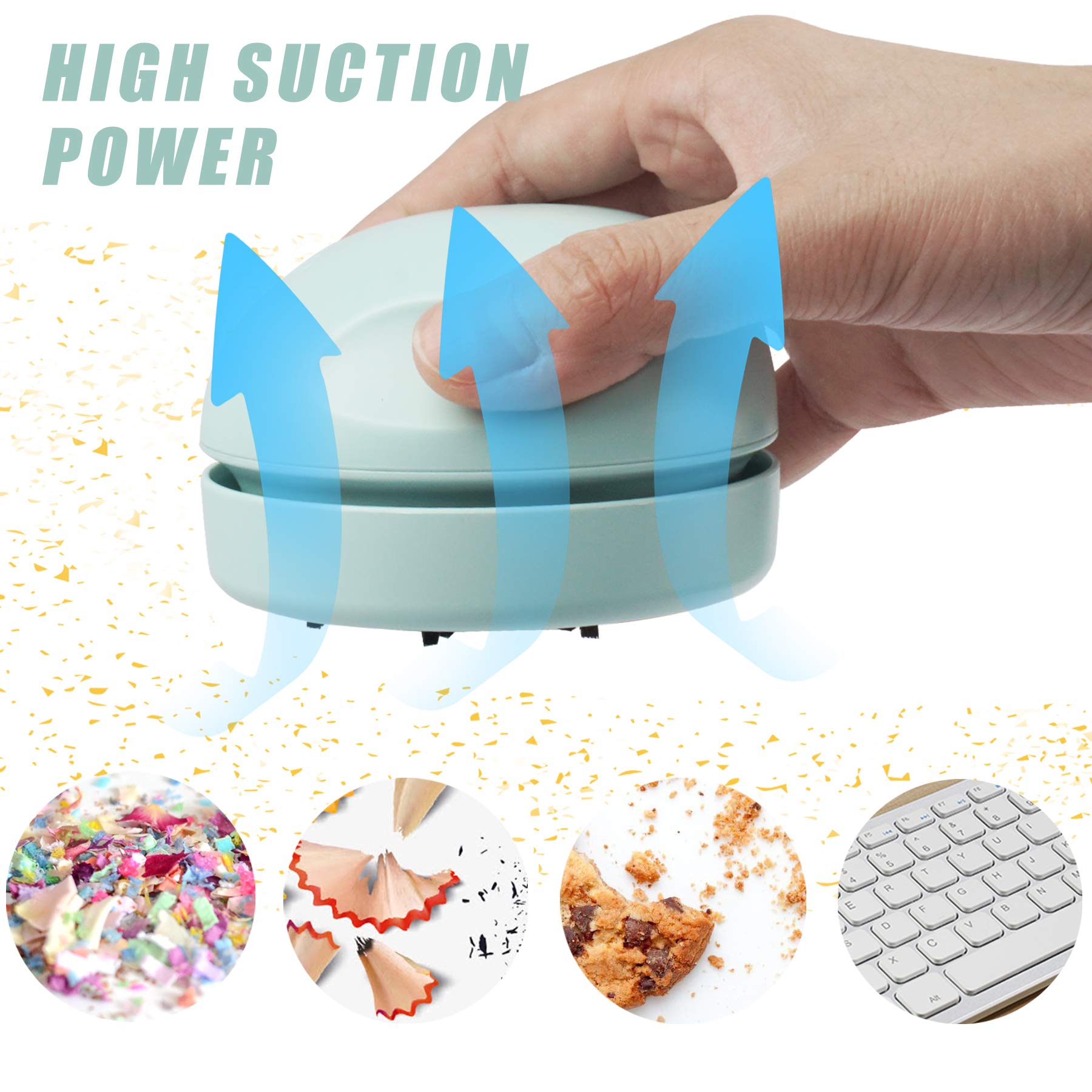 - HIGH SUCTION POWER WITH LOWER NOISE: Although it is a mini Desktop Vacuum Cleaner, the suction power is strong enough to suck up a lot of accumulation. It is also quiet enough not to affect other people's working, studying or sleeping. Our USB Mini Vacuum helps you to get rid of the messy paper scraps, daily dust, soot, pet hair or powder on the table