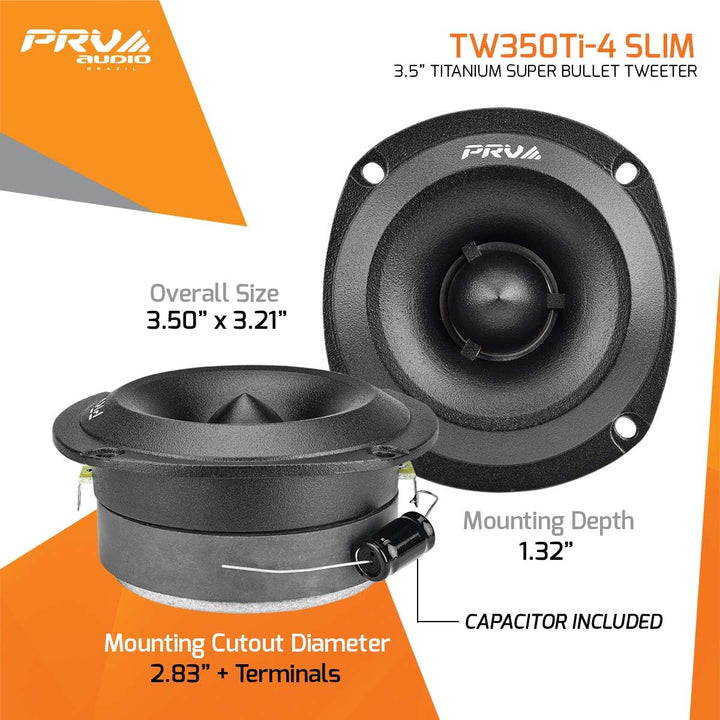 - Original Tweeters – PRV Audio Super Tweeters for Car Audio, 3.5 Inch Bullet Tweeters Pair 240 Watts, PRV Tweeter TW350Ti-4 Slim Titanium Bullet PRO Shallow Tweeters Speakers 4 Ohm - Ultra Slim Easy to Mount Tweeters by PRV AUDIO