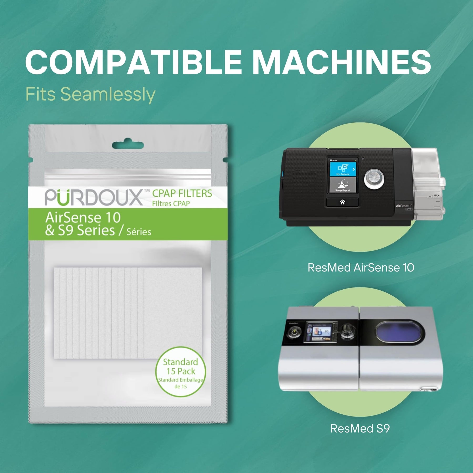 - Original CPAP Accessories – PURDOUX CPAP Filters for ResMed AirSense 10 & S9 (Standard 15 Pack), CPAP Bacteria Filters for CPAP Machine, CPAP Supplies Filters, CPAP Accessories by Purdoux