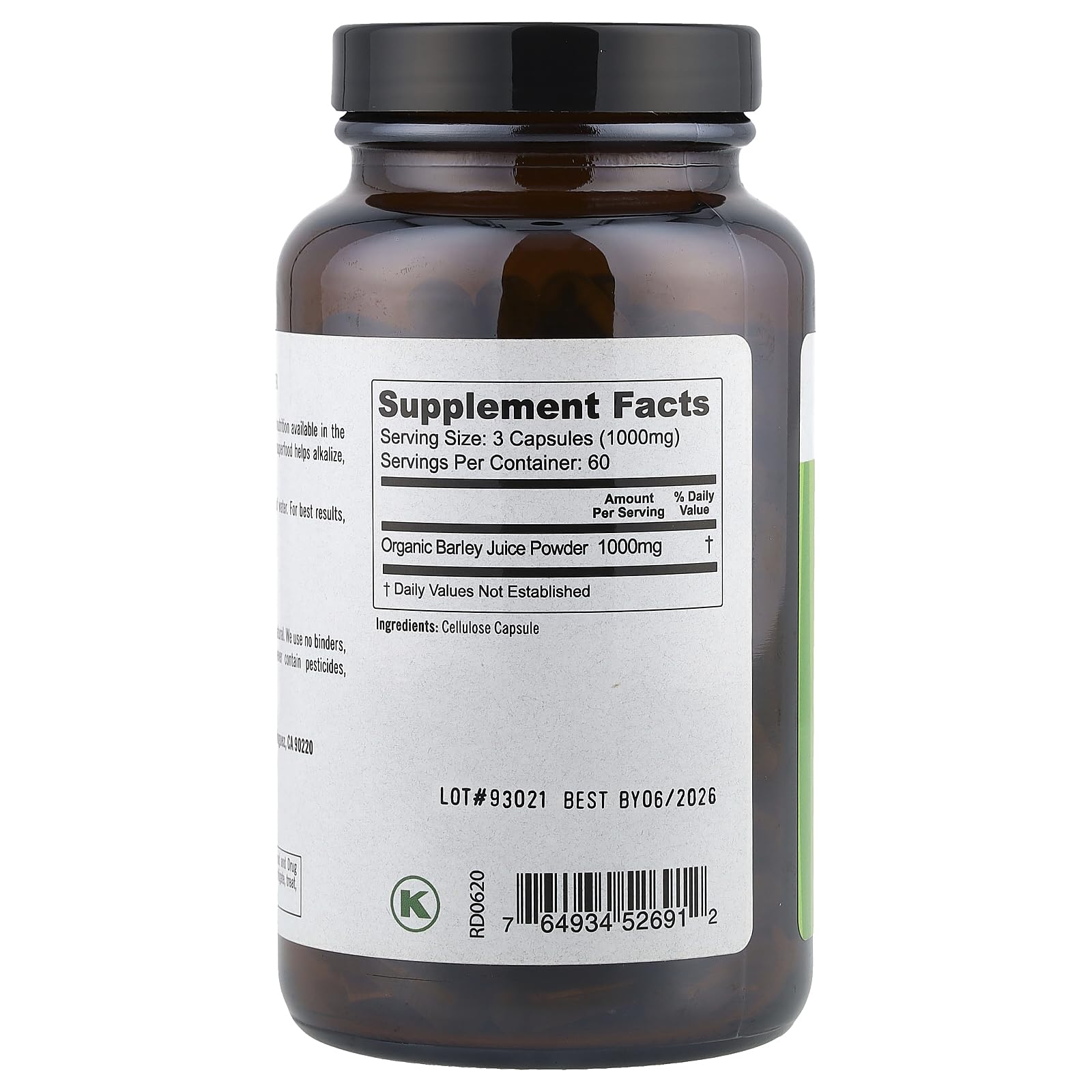 | ingredients | 100% Pure, organic barley juice extract and vegetarian capsule. |