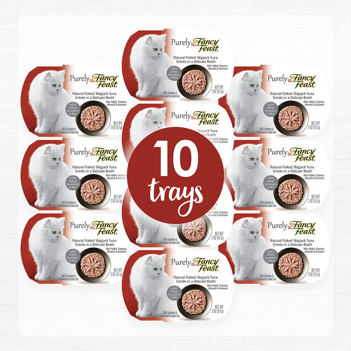 - Original Canned – Purina Natural Grain Free Broth Wet Cat Food, Purely Natural Flaked Skipjack Tuna Entree - (Pack of 10) 2 oz. Trays by Fancy Feast