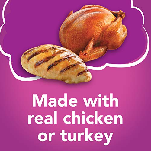 - Canned cat food variety pack includes real chicken and turkey for healthy protein. Hearty bites with poultry and a texture cats love