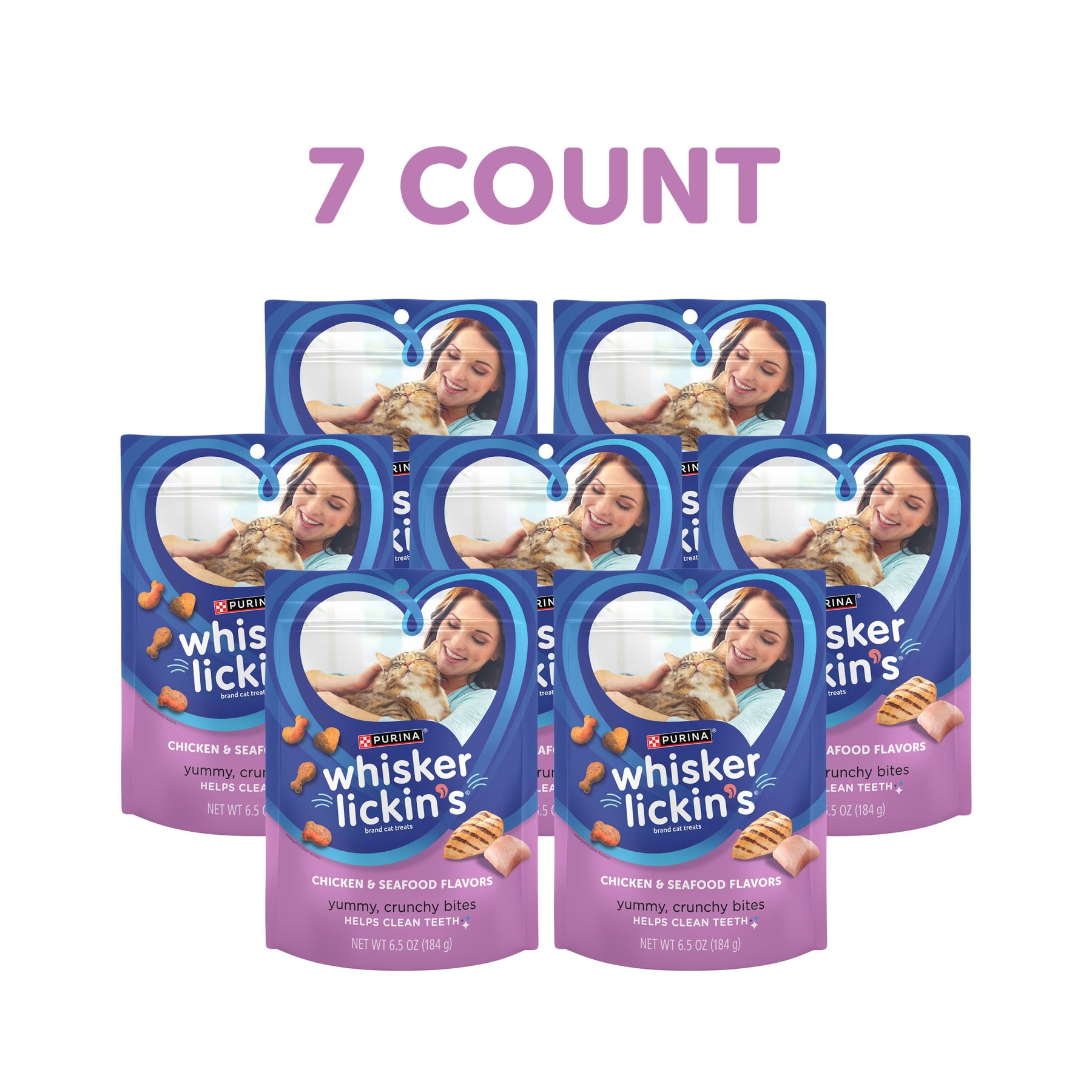 - Original Crunchy Treats – Purina Whisker Lickin's Cat Treats, Crunchy and Yummy Chicken and Seafood Flavors - (Pack of 7) 6.5 oz. Pouches by Whisker Lickin's