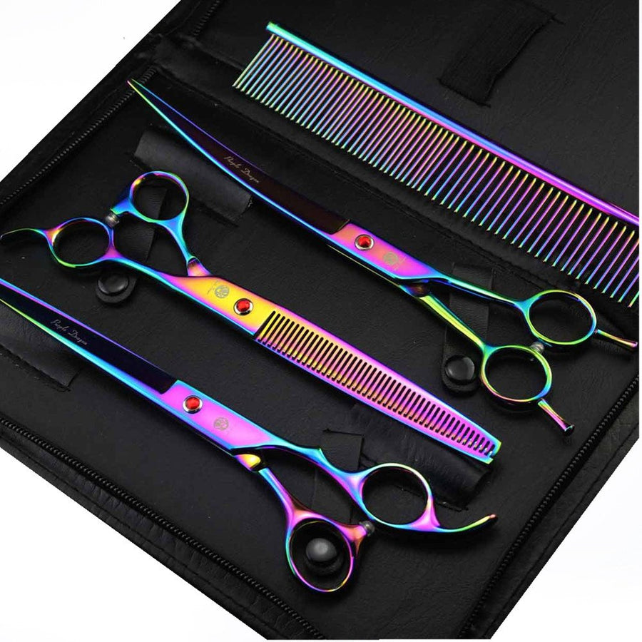 - Original Scissors – 8 inch 3 in 1 Professional Pet Grooming Thinning Scissors - Upward Curved Shears and Dog Hair Cutting Scissor - Perfect for Pet Groomer or Family DIY Use (Rainbow) by Purple Dragon