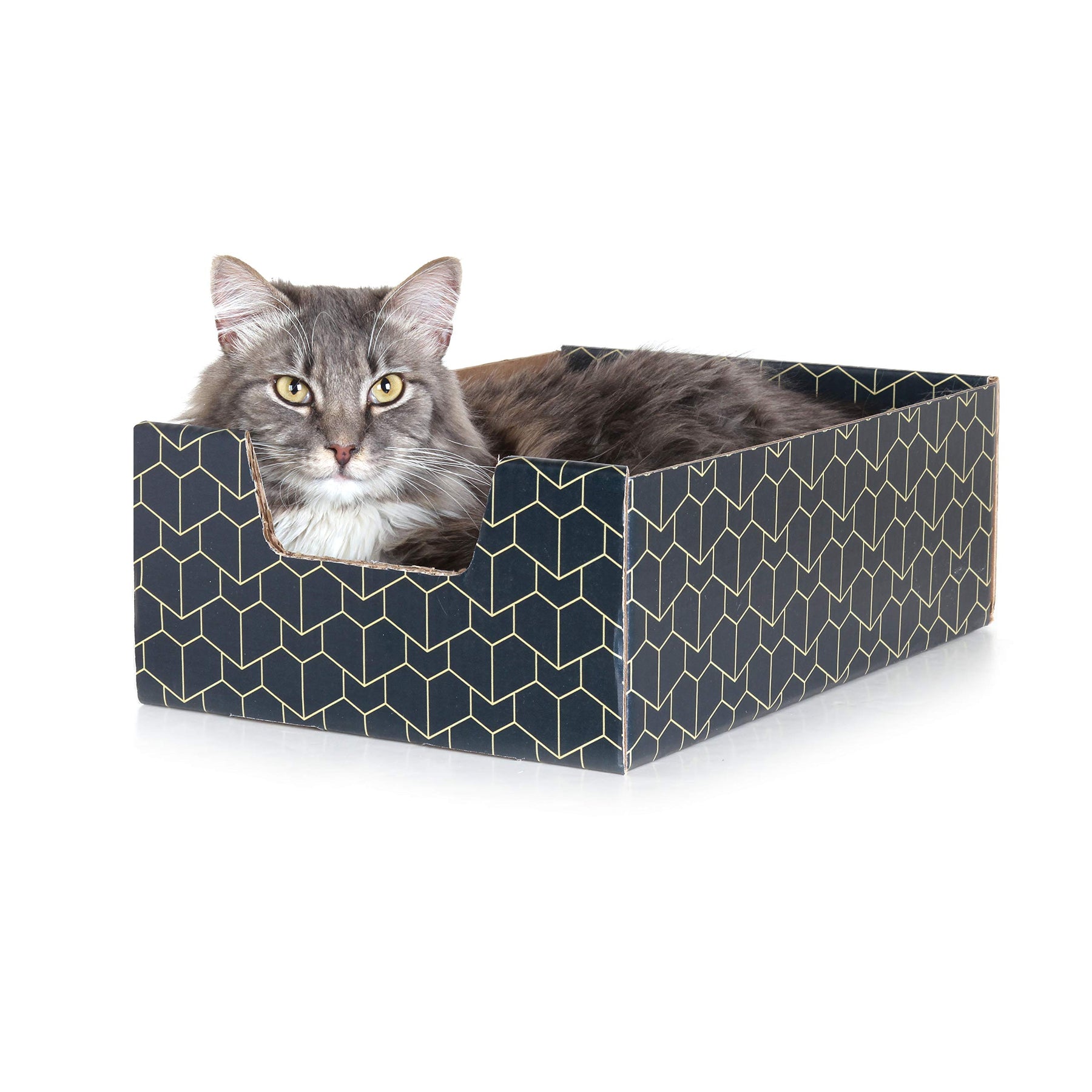 - PREMIUM QUALITY CONSTRUCTION: Crafted with care using high-quality corrugated cardboard, our cat sleeping box ensures durability and stability for long-lasting use; Made in the USA