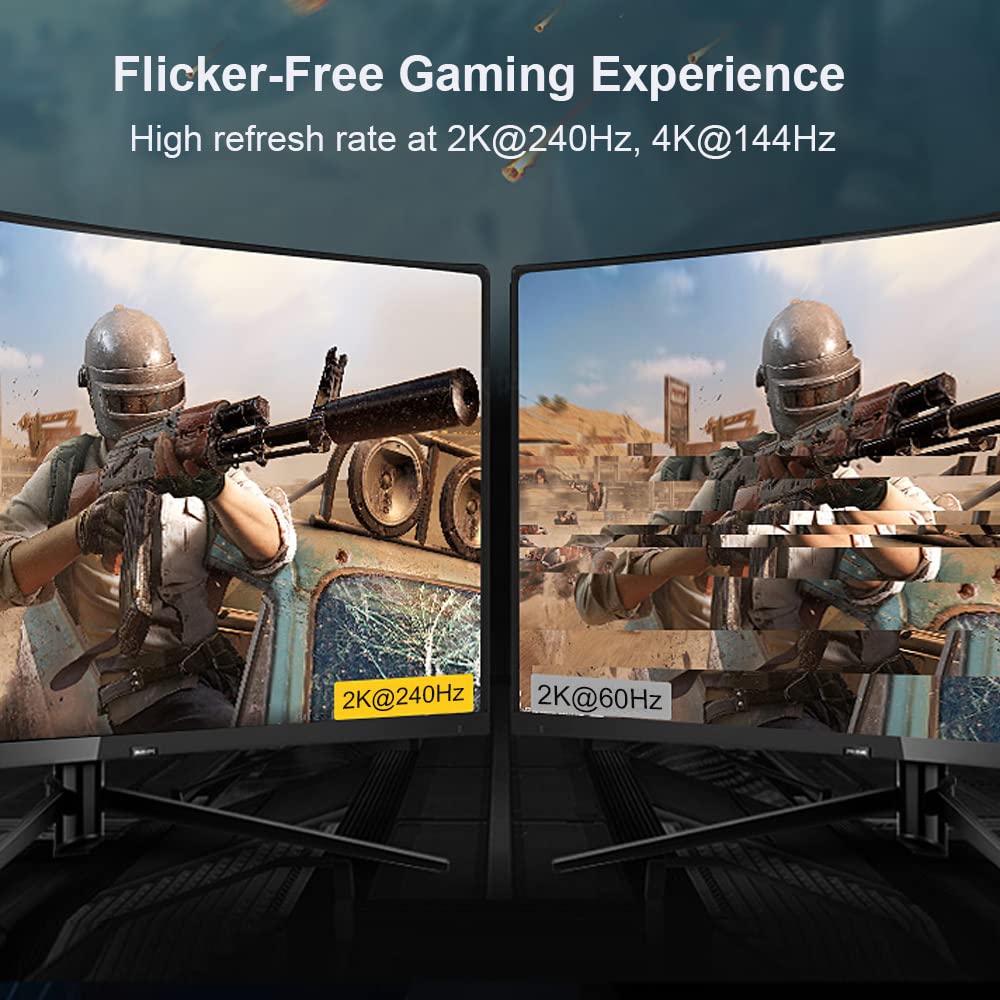 8K@60Hz, 5K@60Hz, 4K@120Hz/144Hz/90Hz/60Hz, 2K@240Hz gamer friendly. Without signal Loss, None-flickering, a great choose for Large 3D Game and video streaming
