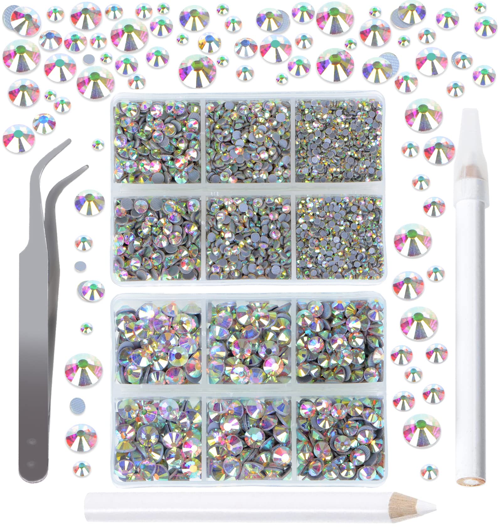 - Original Rhinestones & Decorations – QOGIL 6300pcs Clear AB Hotfix Rhinestones for Crafts Clothes DIY with Tweezers and 2 Picking Pens Mixed Size Flatback Rhinestone by QOGIR