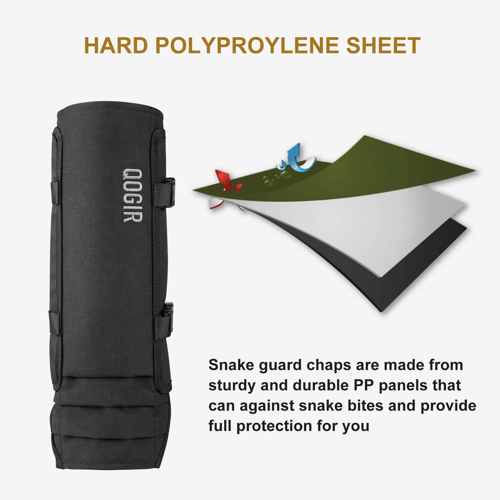 - ADJUSTABLE SIZE FOR MEN & WOMEN: QOGIR snake gaiters feature a unique design of 13 individual polycarbonate panels that wrap smoothly around your calves, lower legs, and ankles. With tightening straps and buckles, you can adjust the gaiters so they fit snugly and comfortably while you're walking, hiking, working, or exploring.snake gaiter are perfect snake guards for women, as well as men.
