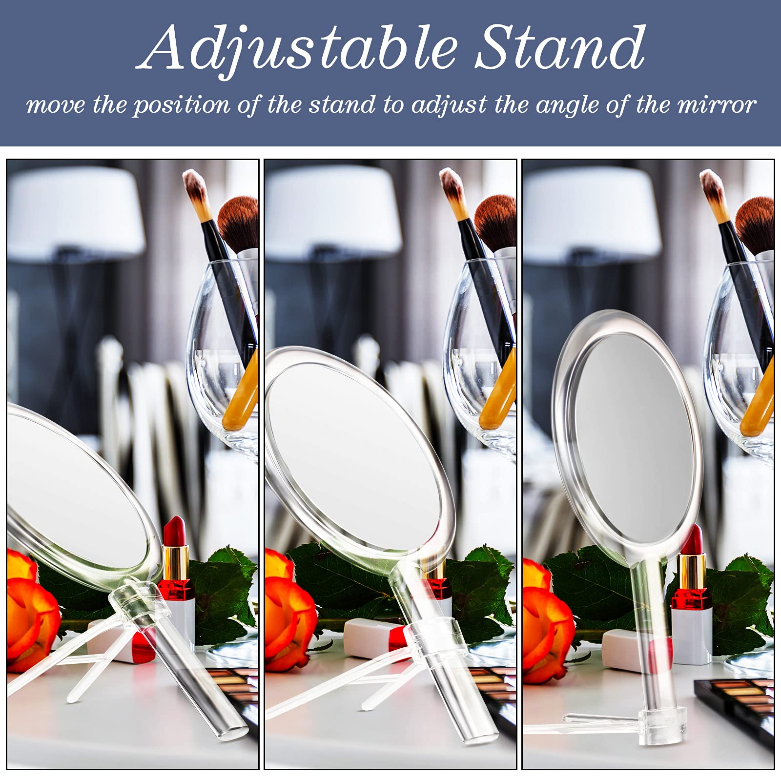- Portable to carry: the clear adjustable handheld mirror is light and easy to carry, suitable to put it in the cosmetic bags or travel cases, won't take up too much space, not heavy for you to take it with you during travel, business trips and other outdoor activities