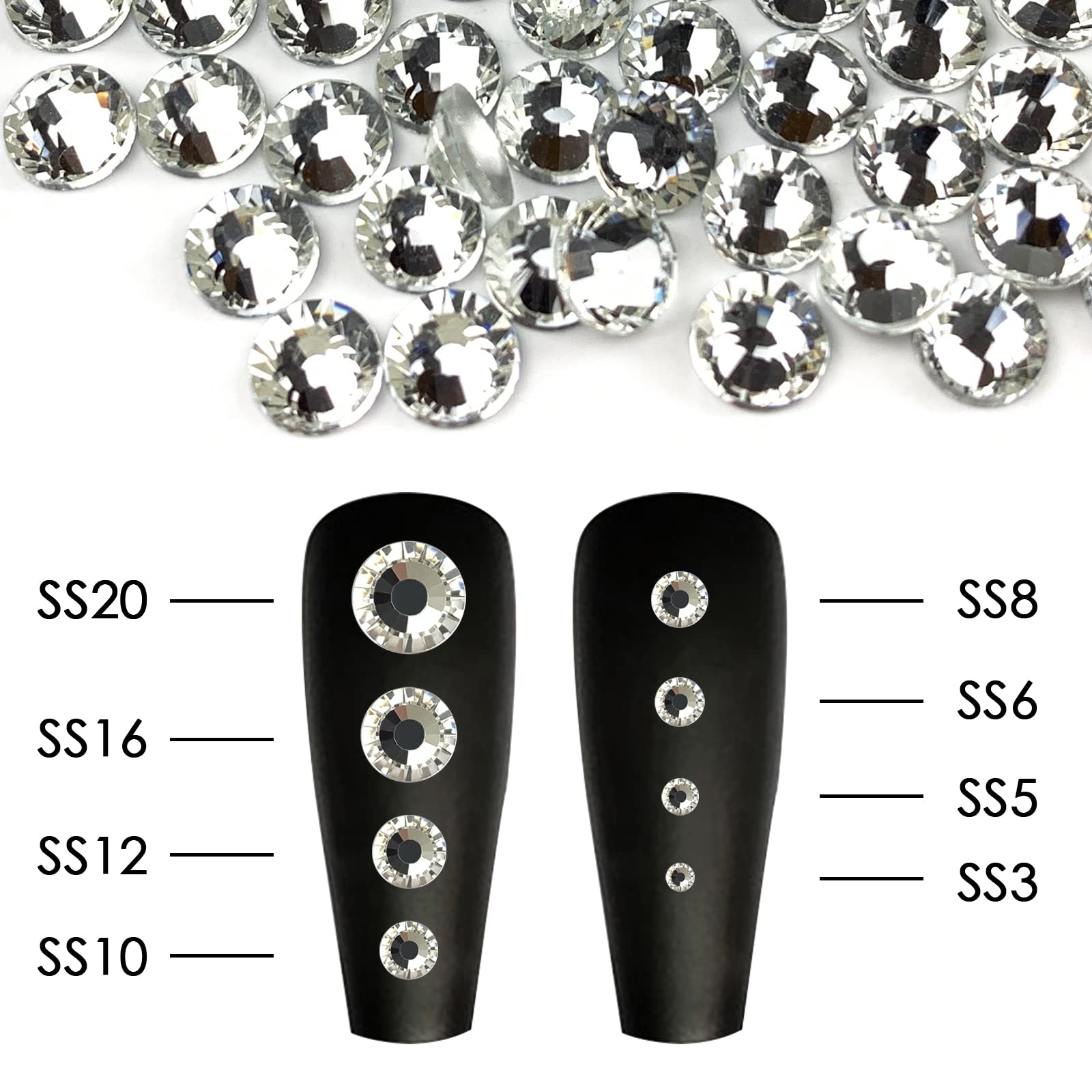 - Original Rhinestones & Decorations – Glass Crystal Flatback Rhinestones for Nail Art and Craft, Round Stone Gems Sparkly Diamond (SS12 1440pcs, Crystal) by Queenme