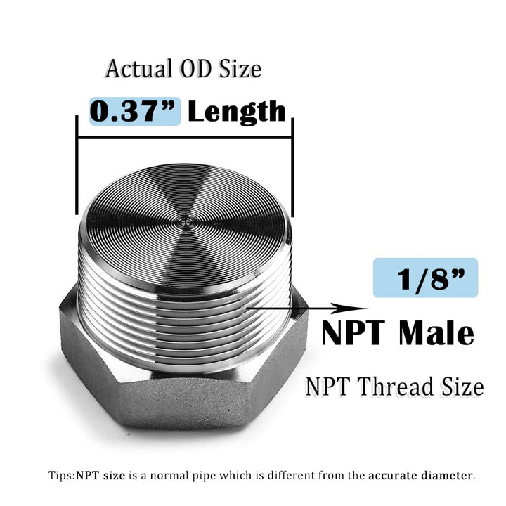 - Original – 304 Stainless Steel 1/8 NPT Male Outer Hex Thread Socket Pipe Plug Fitting (Pack of 4) by Quickun