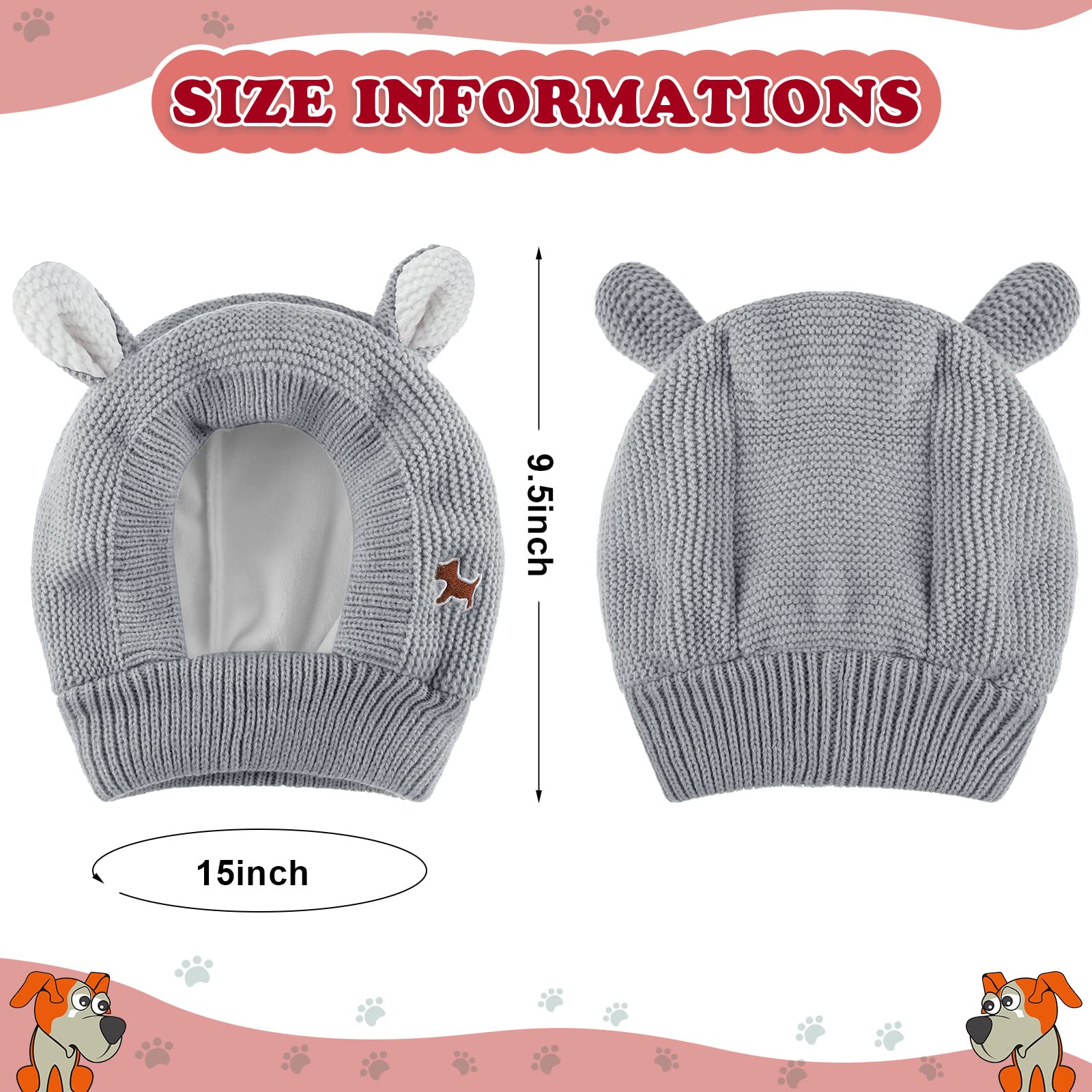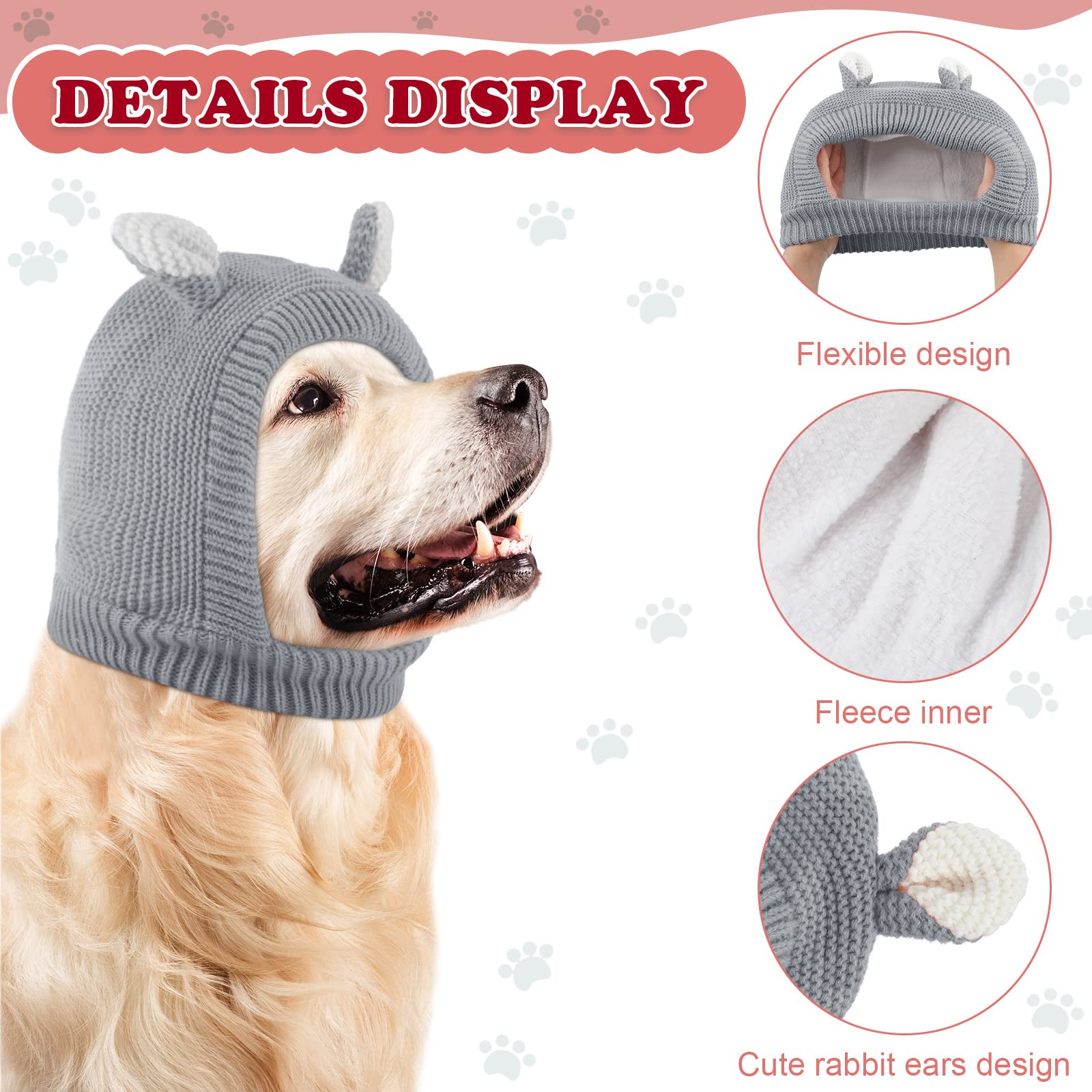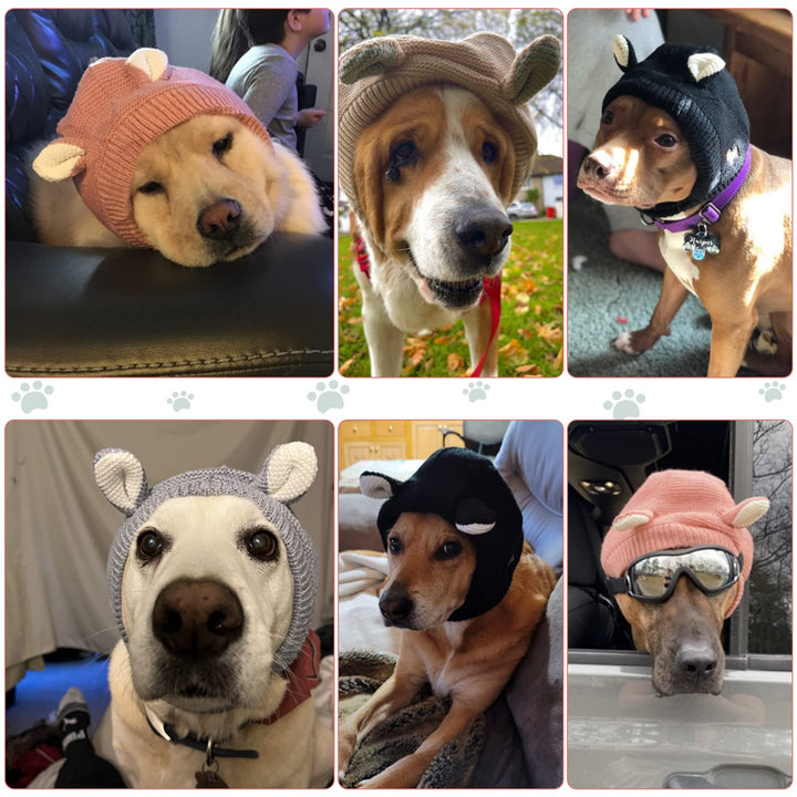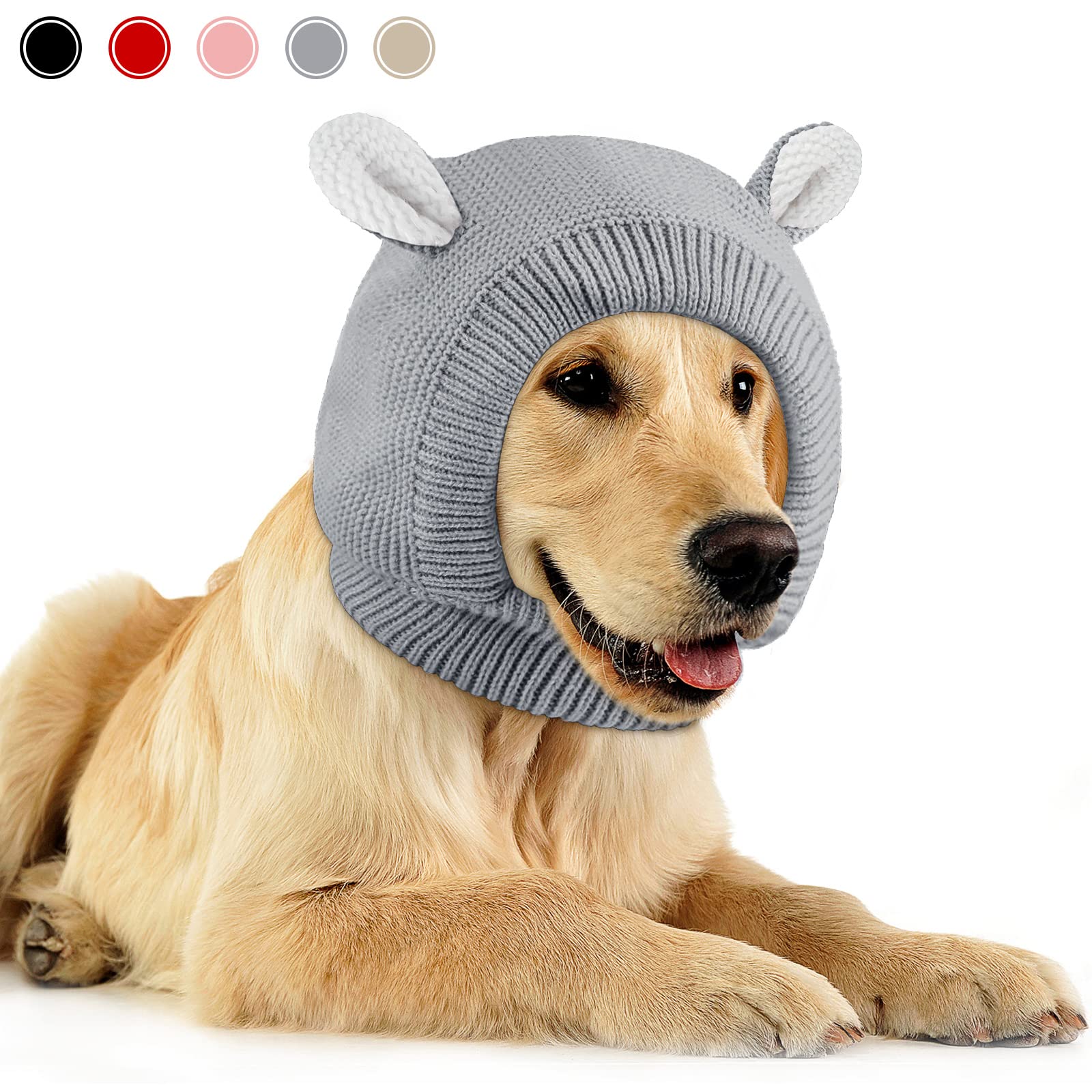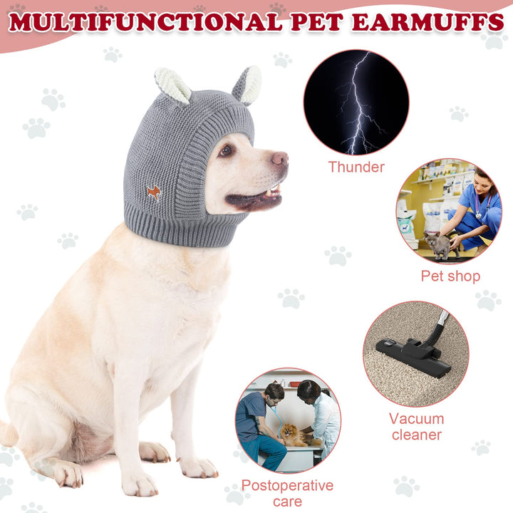 - Original Hats – Quiet Ears for Dogs, Dog Ear Muffs Noise Protection Knitted Dog Hats Pet Ears Warm Dog Ear Cover Winter Hat Dog Snood Head Wrap Bunny Costume for Medium to Large Dogs Cats Pets (Grey) by Frienda