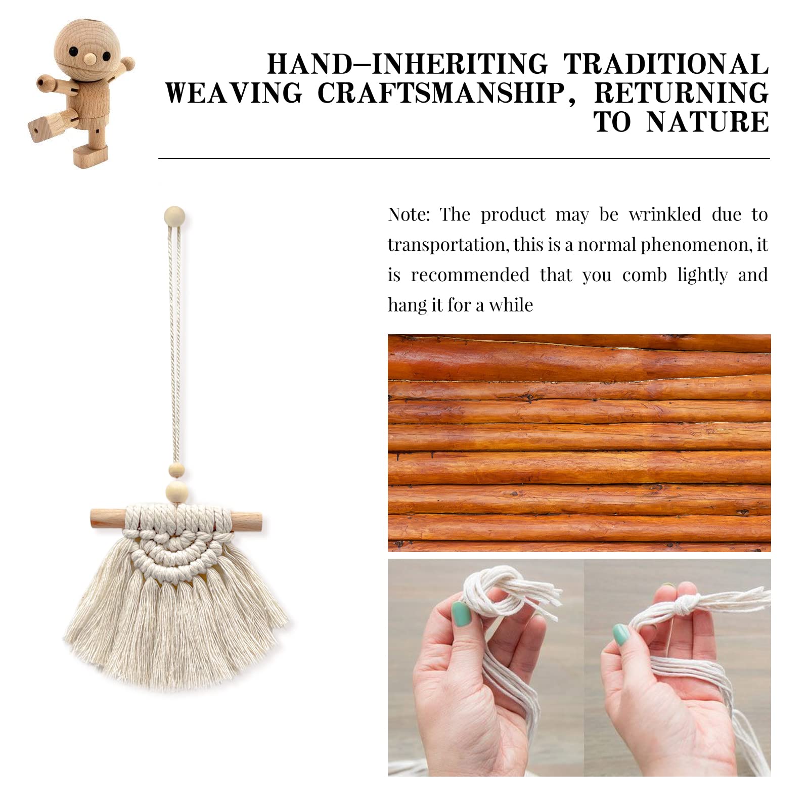 - High-Grade MaterialsThis bohemian wall hanging is made of 100% cotton thread and high-end natural wood beads. Safe and non-toxic, the rope is strong, the workmanship is meticulous, and the handwork is excellent. It is the best choice for your furniture wall hangings and car hanging decorations