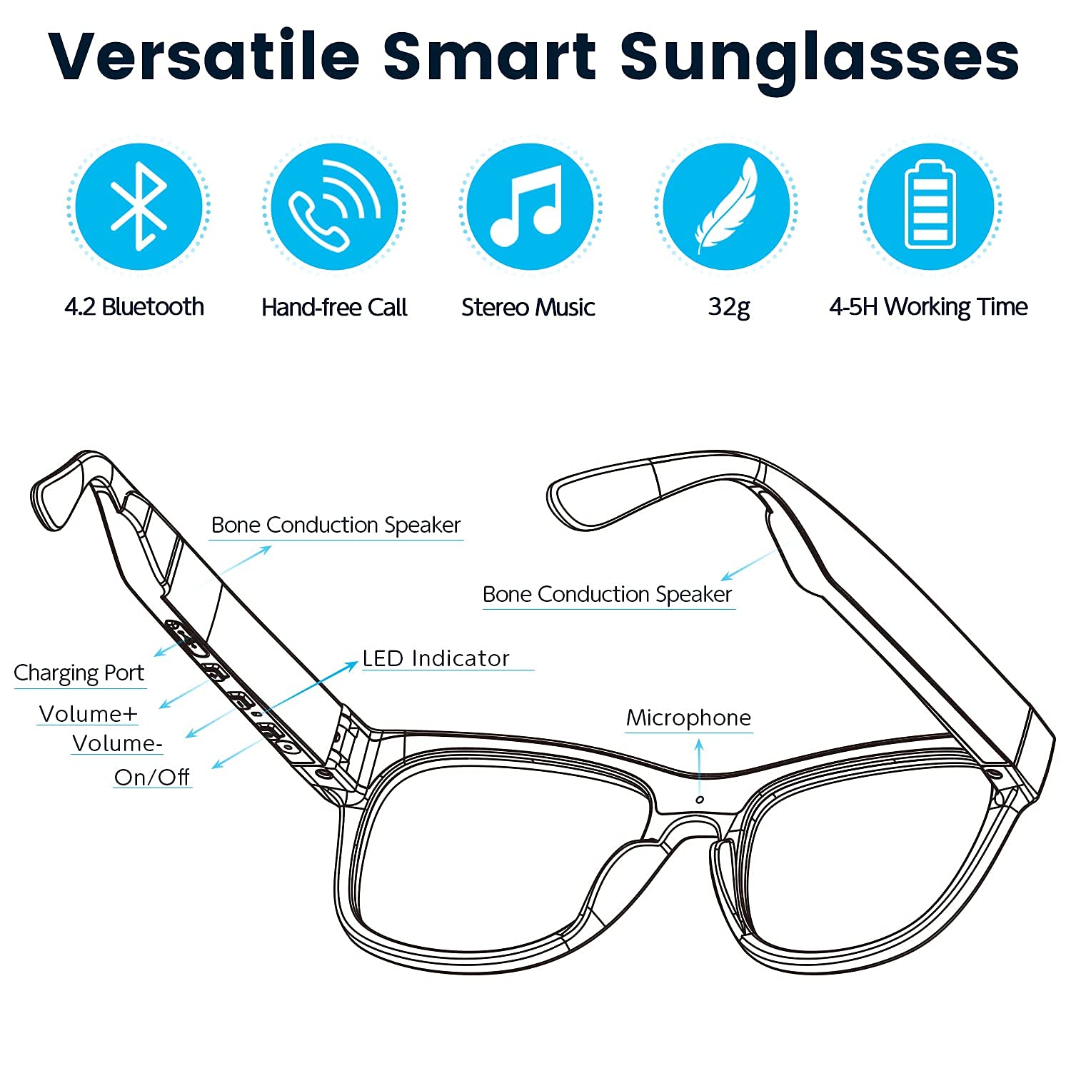 - Hands-Free Calling and Music: These wireless smart glasses offer convenience while driving or jogging. Easily control volume, calls, and music with frame buttons. For optimal experience, maintain Bluetooth device volume at 50%-60%; higher volume may cause sound leakage or echo during calls