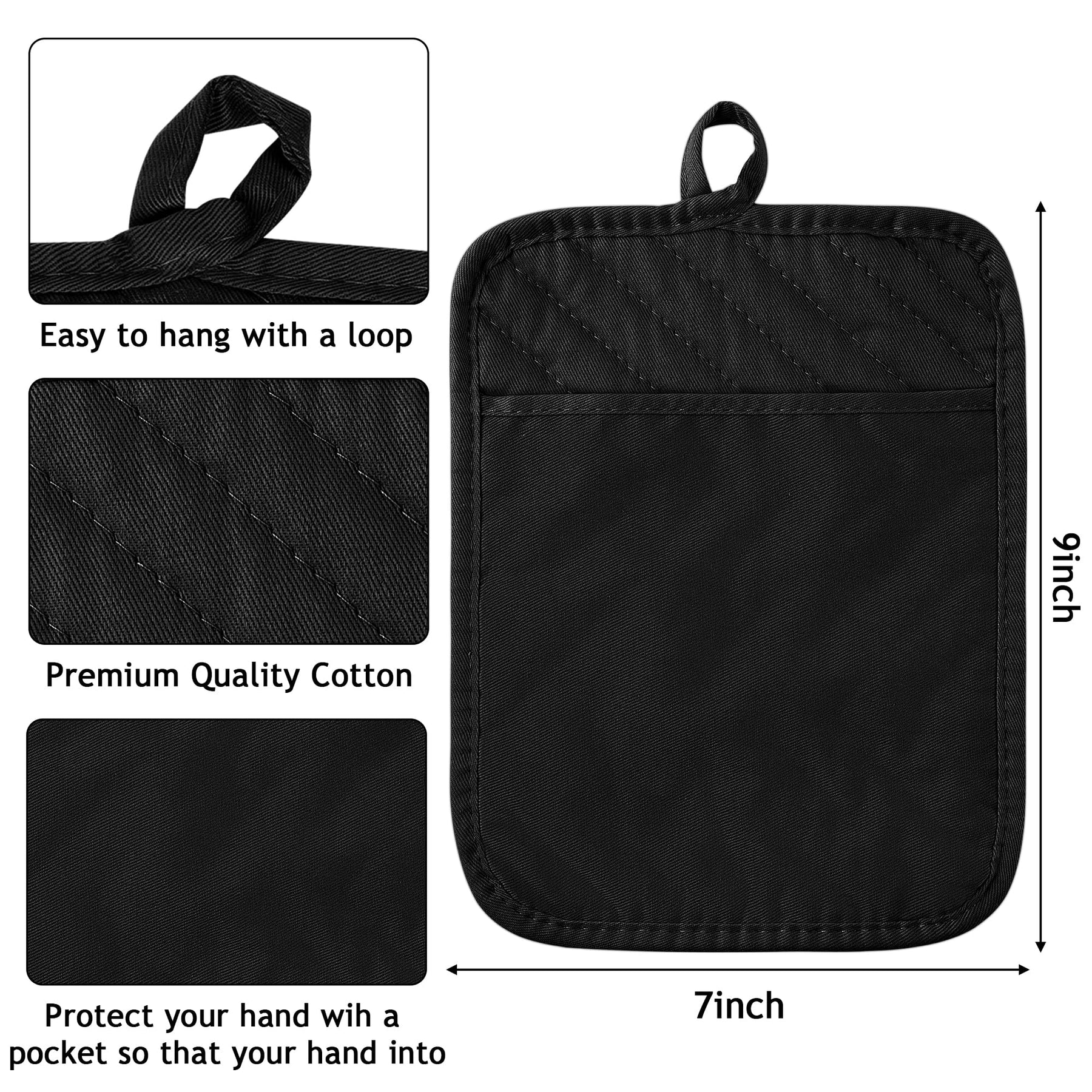 - Original Potholders – 6Pcs Pot Holder with Pocket for Kitchen Black Grey Red Pocket Pot Holder Cotton Heat Resistant Potholder Coffee Coaster Kitchen Hot Pad Oven Mitts Hot Pads Trivet for Baking Cooking 7''x9'' by R HORSE