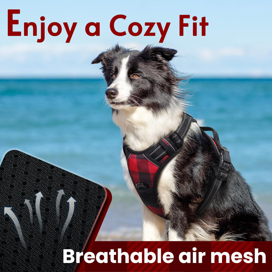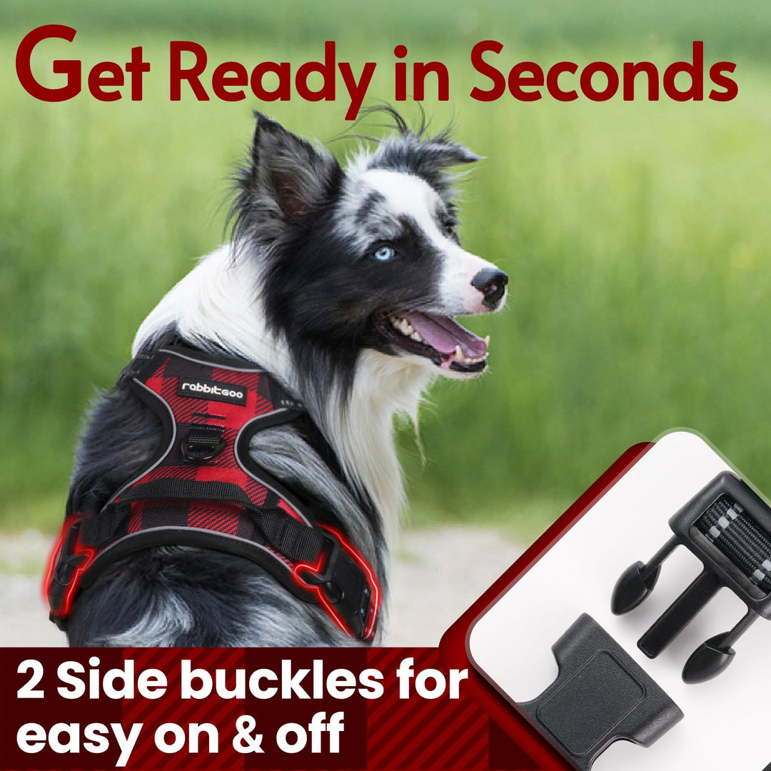 - Original Vest Harnesses – Dog Harness for Large Dogs No Pull, Comfortable Padded Plaid Dog Harness with Handle Easy Control, Adjustable Reflective Puppy Pet Harness Vest with 2 Leash Clips, Red Plaid, L by rabbitgoo