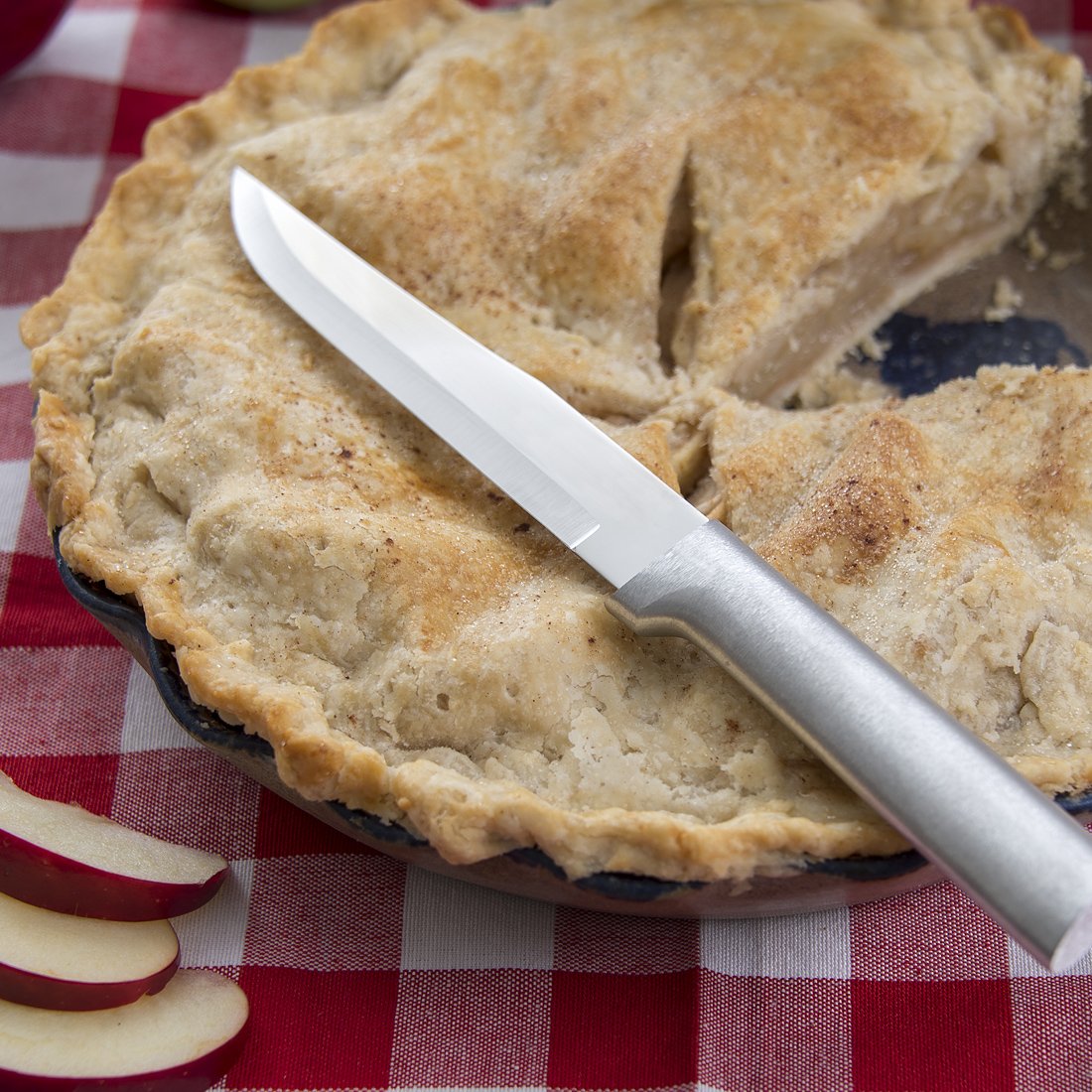 - ALL-PURPOSE KITCHEN KNIFE – This versatile butcher knife is great for cutting ribs, slicing a pineapple and cutting up cakes and pies. The blade measures 5-3/8 inches and has an overall length of 9-7/8 inches.