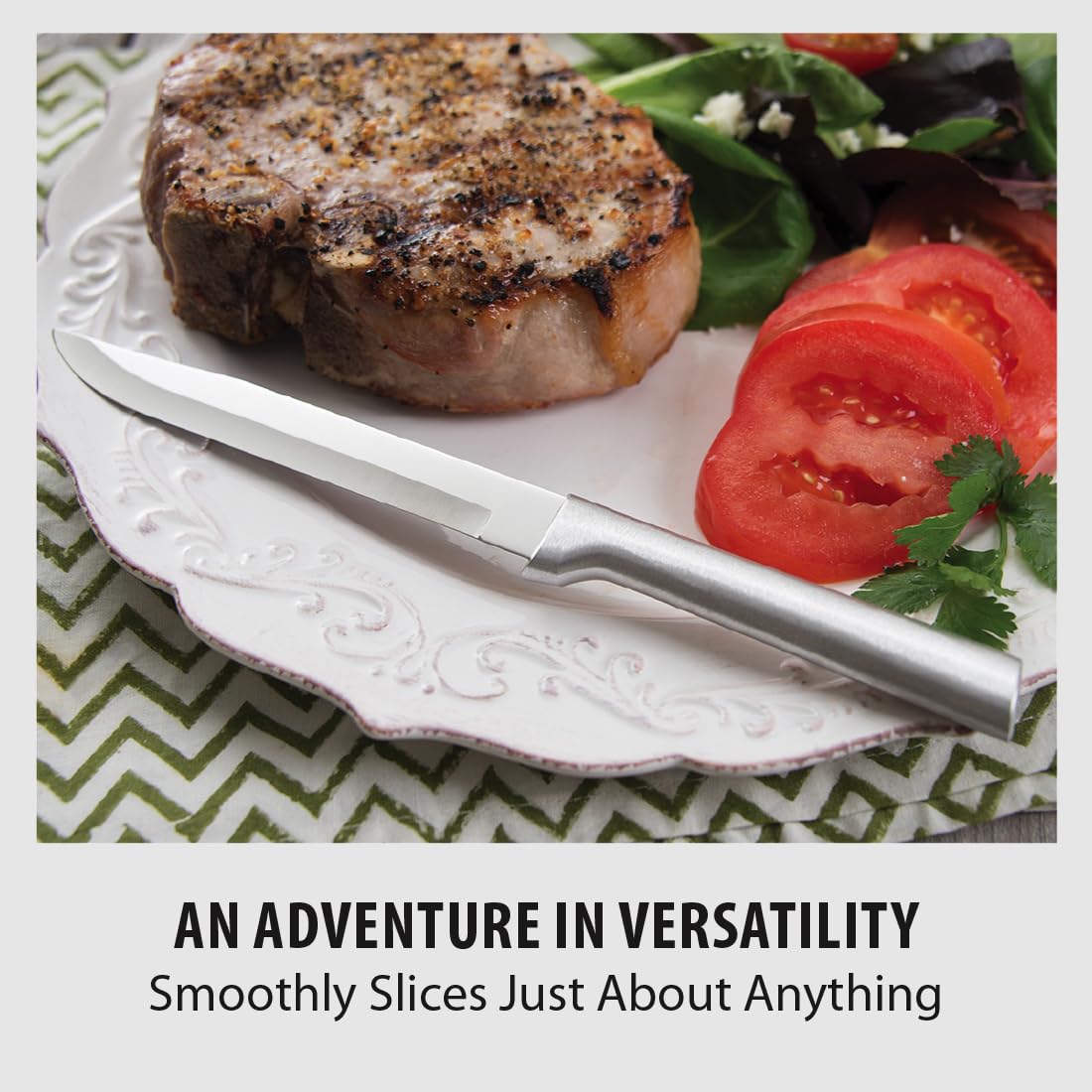 - Original Steak Knives – Rada Cutlery Utility Steak Knife – Stainless Steel Blade With Brushed Aluminum Handle Made in USA, 8-5/8 Inches by RADA