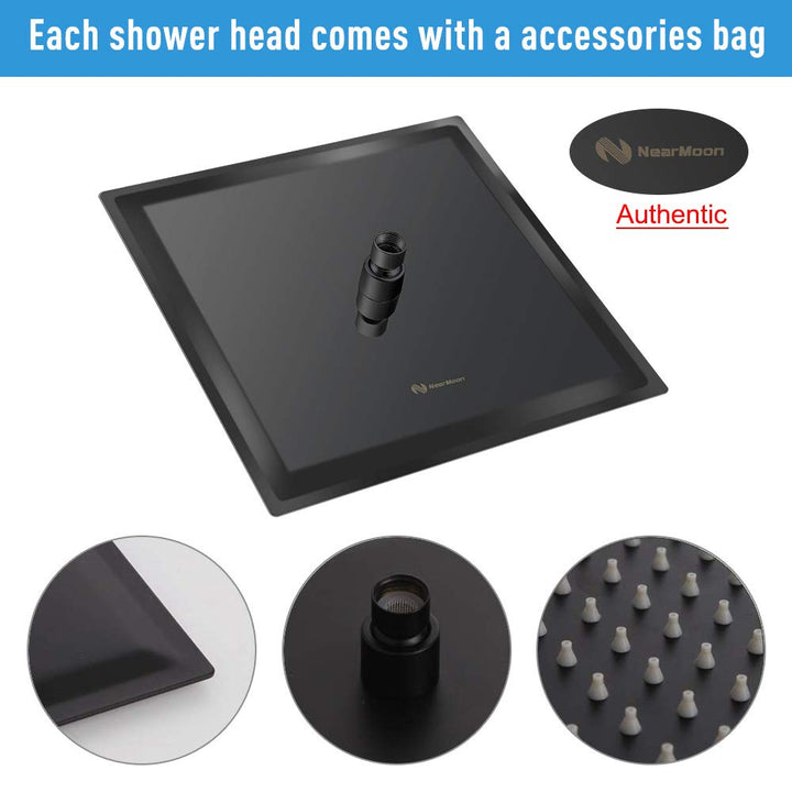 - Original Fixed Showerheads – Rain Shower Head With Extension Arm, Square Shower Heads, Large Stainless Steel Rainfall Showerhead-Waterfall Full Body Coverage (12 Inch Shower Head With 15 Inch Shower Arm, Matte Black) by NearMoon