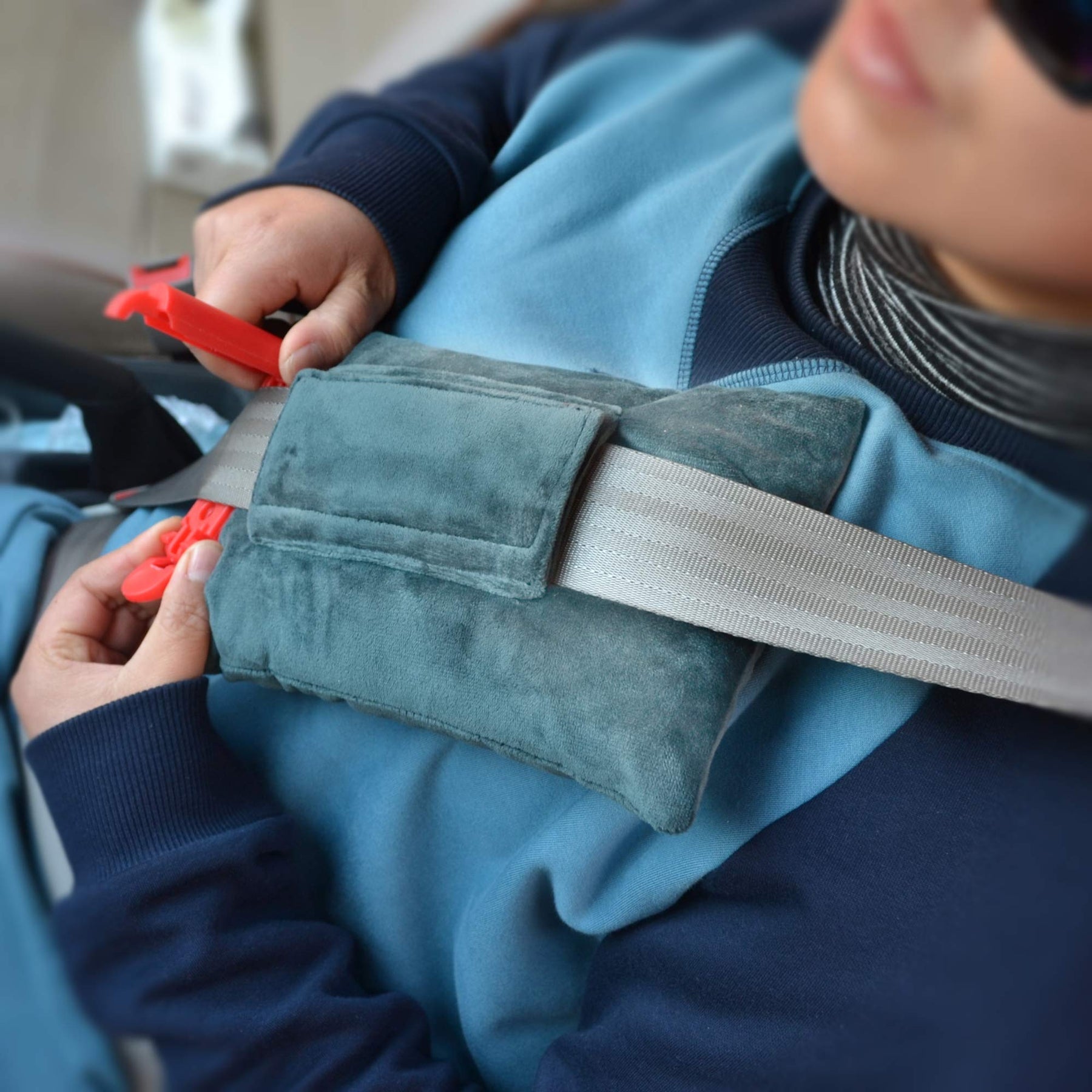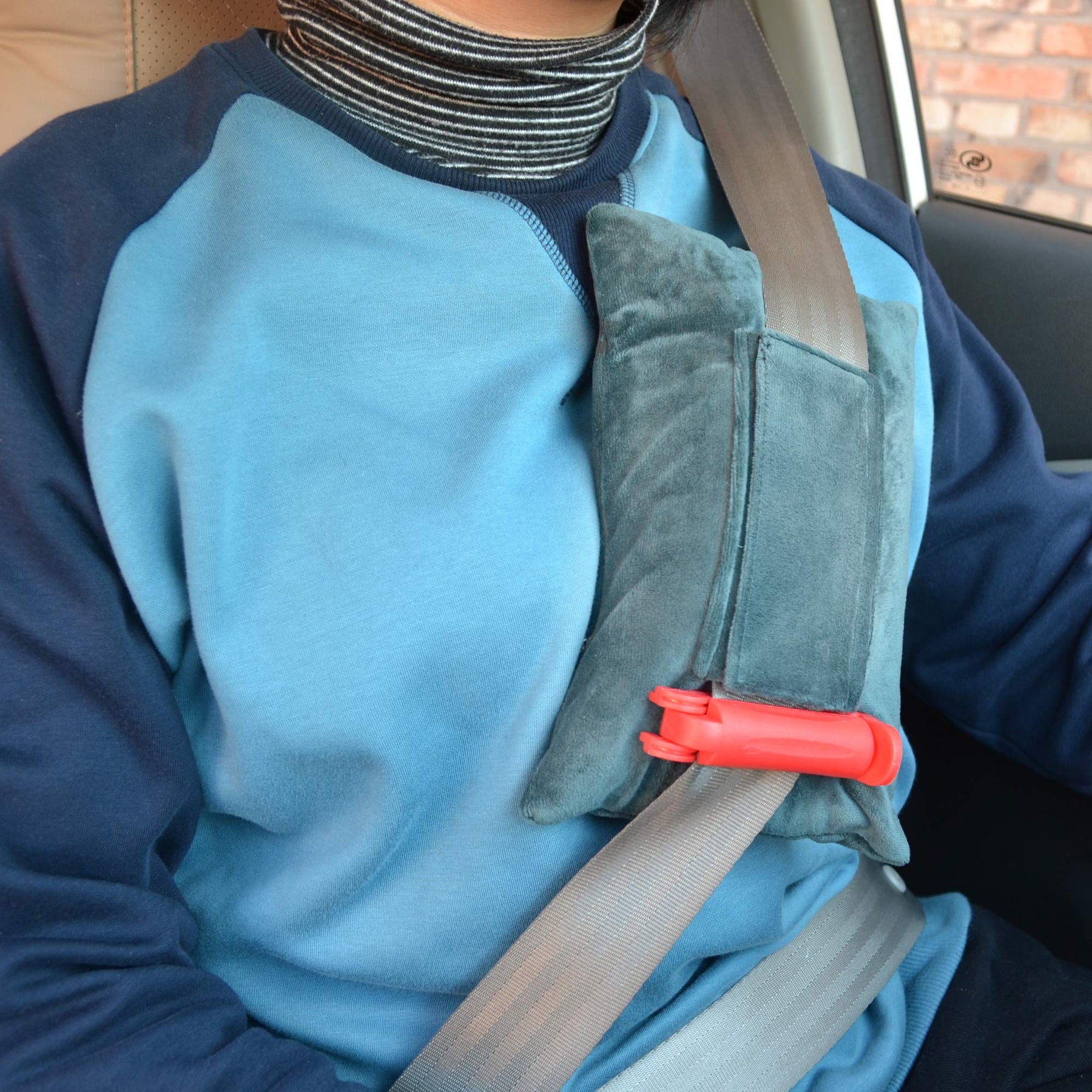 Protect the chest sensitive areas cushioned during car rides with this seatbelt pillow.