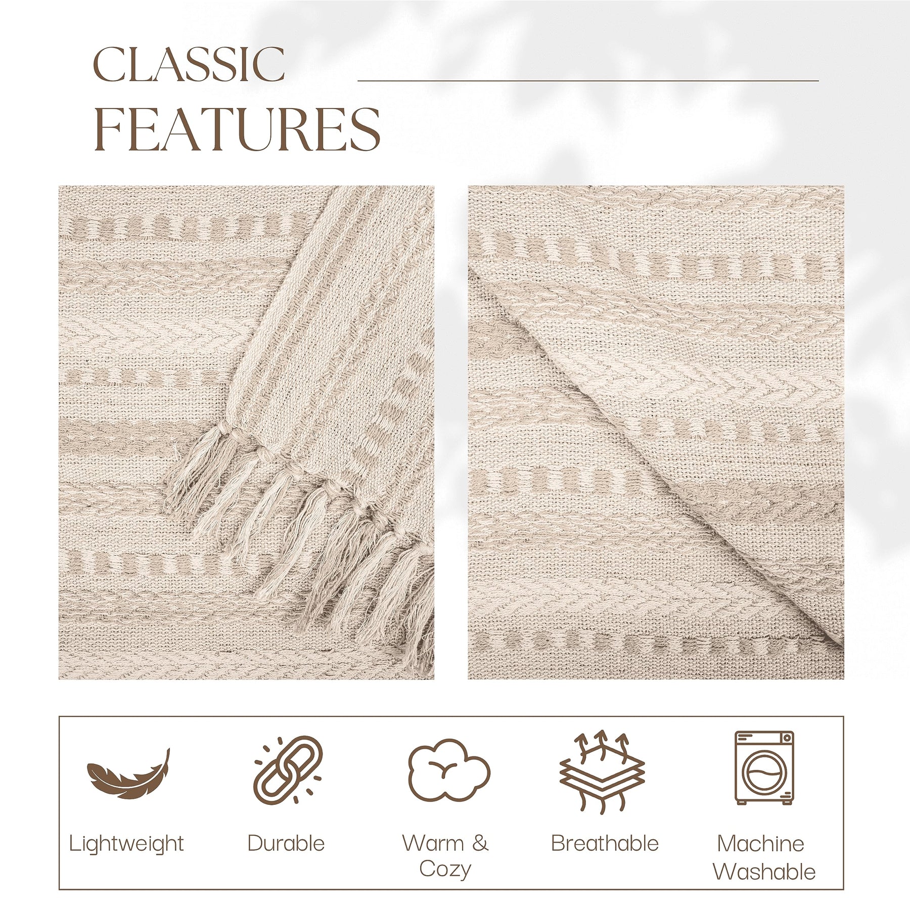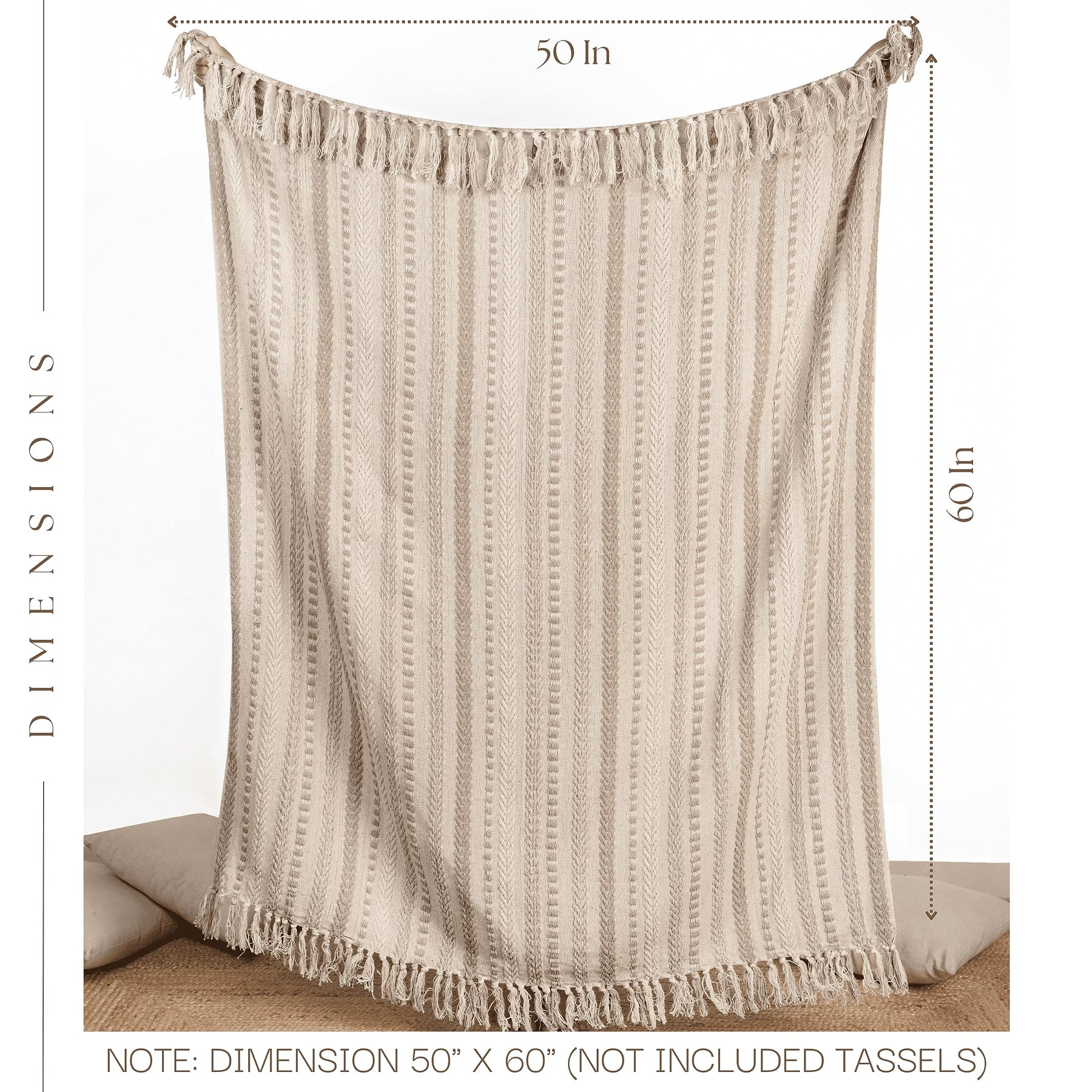 - Original Throws – Farmhouse Throw Blanket Boho Living Room Decor Brown Cotton Stripe Cozy Bed Blankets with Fringe Soft and Luxury for Couch 50 x 60 Inches Warm Sand by RAJRANG
