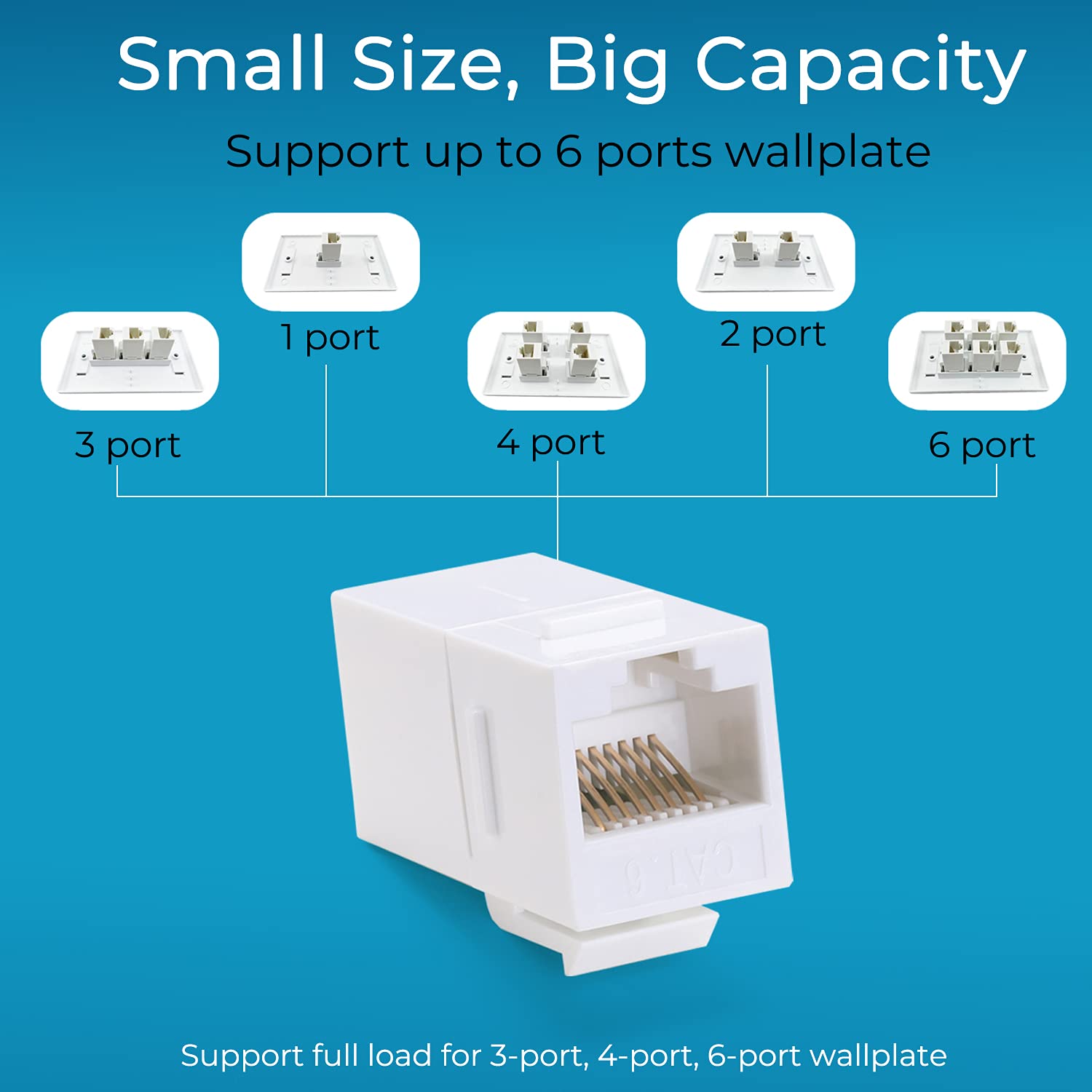 - Slim Compact Size This ethernet female to female coupler can support up to 6 ports wallplates, thanks to its slim compact size. Surely, ethernet coupler also support other ports wall plates. Meanwile, It widely compatible with all kinds of cat6, cat5e, cat5 Ethernet cables, faceplate and blank patch panel.