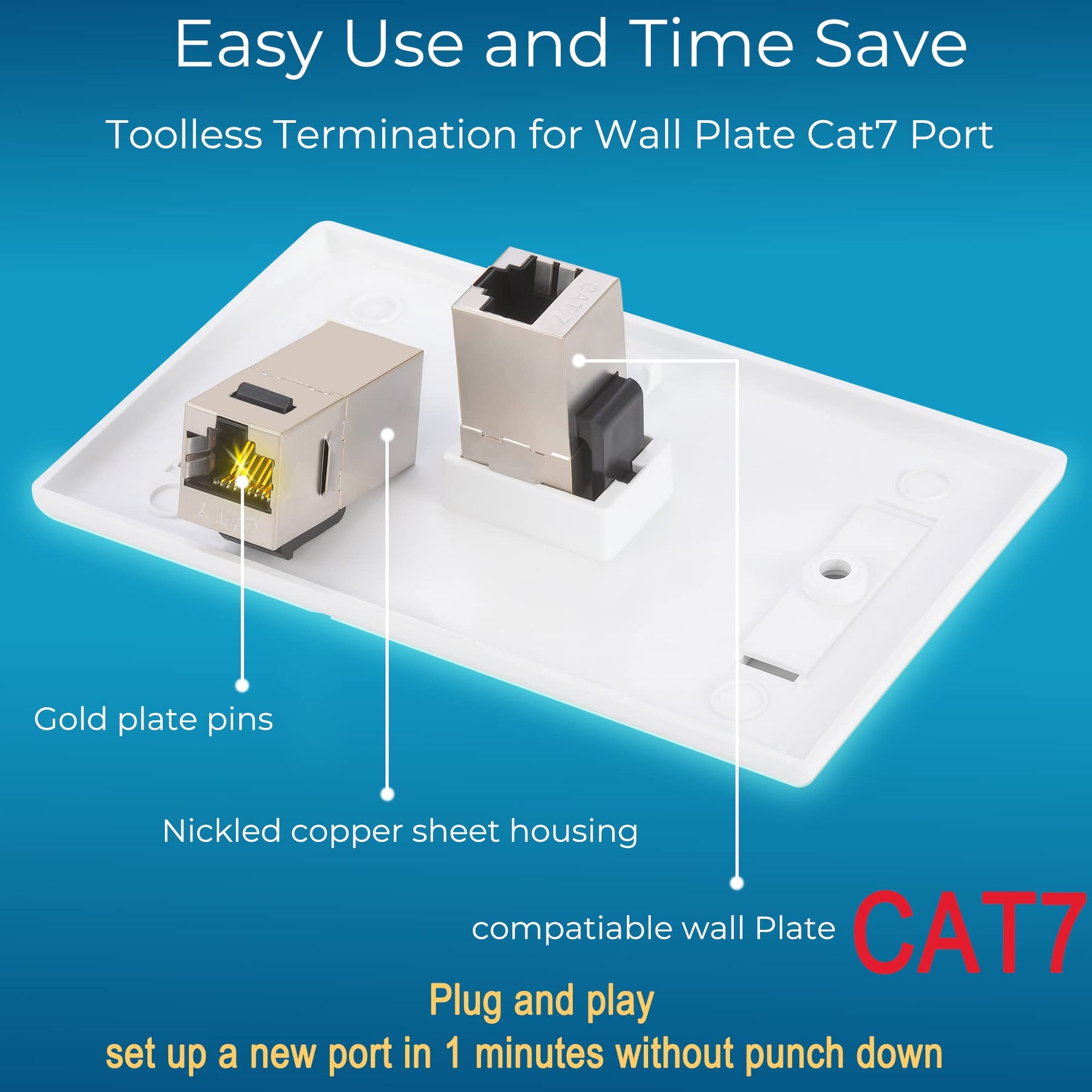 - Easy use and Time saveWith Cat7 keystone jack female to female, it is easy to set up a new ethernet wall plate cat7 port in several minutes without any tool. Cat7 coupler ethernet keystone is much easier than punchdown keystone to make an ethernet wall plate female to female cat 7.